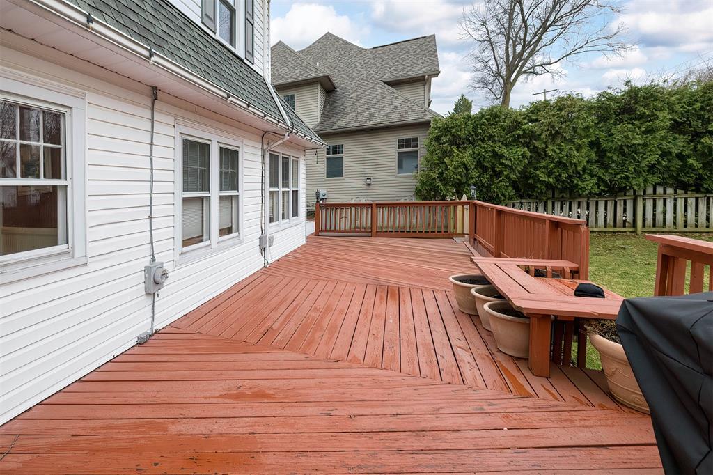 Located on a quiet street in the heart of the Frontier neighborhood, this 4 bedroom, 3 bath home offers a functional layout with formal living and dining rooms, a dedicated home office, and an eat-in kitchen with brand new stainless steel appliances and a spacious walk-in pantry. The finished basement provides additional living space and includes a full bathroom. Hardwood floors, generously sized closets, updated bathrooms, and a new HVAC system contribute to the home’s overall quality. Outside, a large deck overlooks the professionally landscaped yard, which was leveled and resodded in 2025 and includes a fenced-in area for pets.