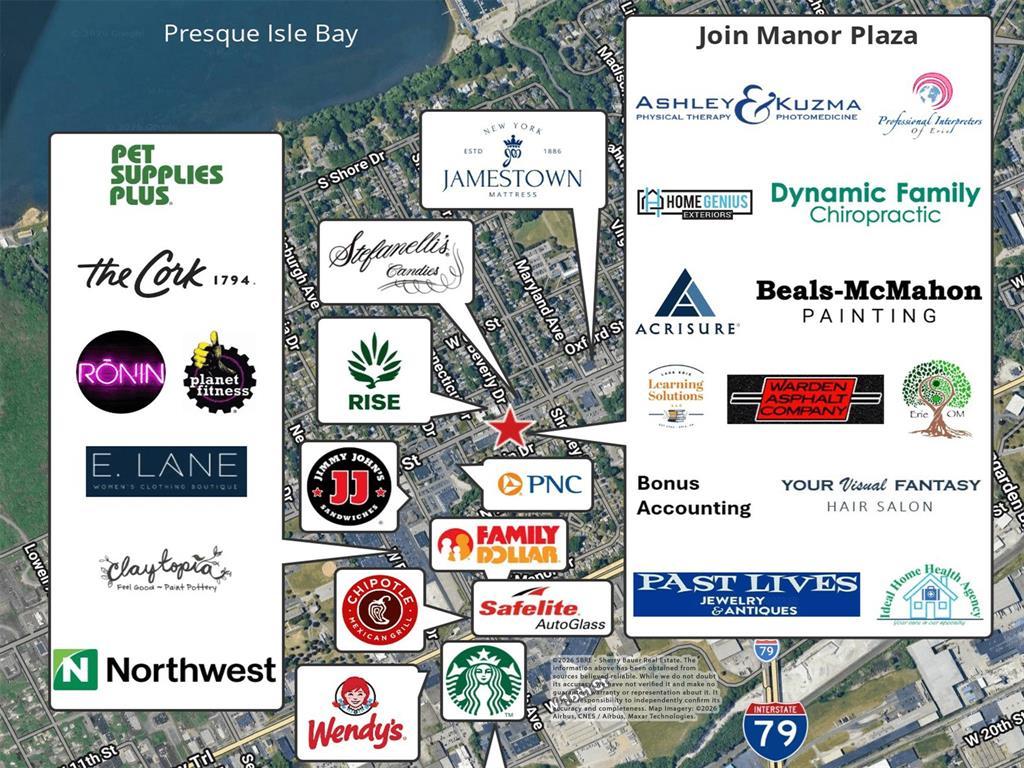 2,040± SF lower level mixed-use space for lease at Manor Plaza. Layout includes 4 offices, 2 open workspaces, coffee bar, 2 restrooms & utility room. Space is handicap accessible with chair lift to lower level. Lower level is ADA accessible with chair lift. Floor plan available. Excellent signage & visibility along a high traffic corridor & abundant free parking. Zoned C-1, Local Commercial District. Some use restrictions apply. Join Ashley & Kuzma Physical Therapy, Beals-McMahon Painting, Acrisure, Bonus Accounting, Dynamic Family Chiropractic, Erie Oriental Medicine, Home Genius Exteriors, Ideal Home Health Care Agency, Lake Erie Learning Solutions, Past Lives Jewelry & Antiques, Professional Interpreters of Erie, Warden Asphalt Company & Your Visual Fantasy Hair Salon. Tenant pays base rent ($2.35/SF/YR), gas, electric and pro-rata share of taxes, insurance & CAM - a total of approximately $730/month plus gas & electric (CAM based on expenses from 3/2025-2/2026).