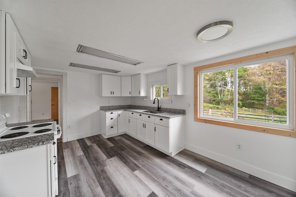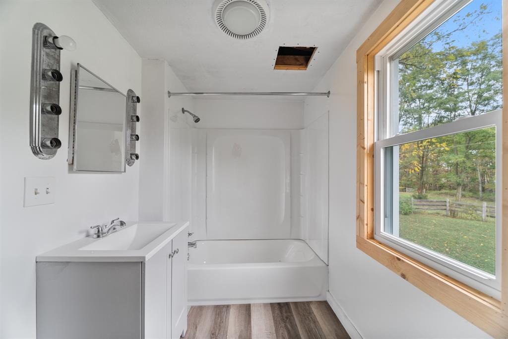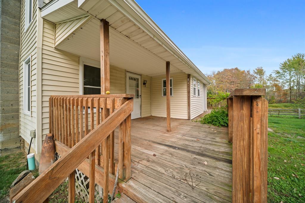 This charming farmhouse, perfectly situated on a sprawling 62+ acres, offers a serene and picturesque retreat. Seamlessly blending rustic character with modern comforts , tis property provides the ideal setting for peaceful country living. Step inside to a warm and inviting living room featuring newer flooring and an abundance or natural light. The renovated kitchen showcases linen-colored cabinetry, generous counter space, and scenic views of surrounding land. Two spacious bedrooms offer comfortable space to unwind, and the updated bath is complete with modern fixtures for conveince and style.