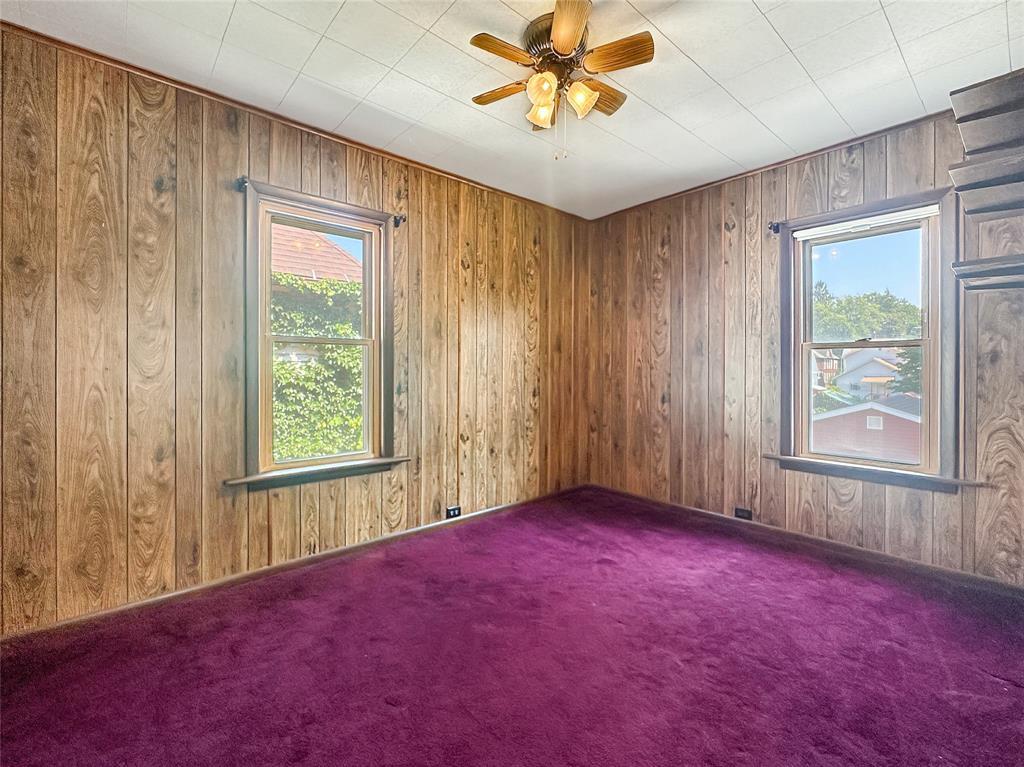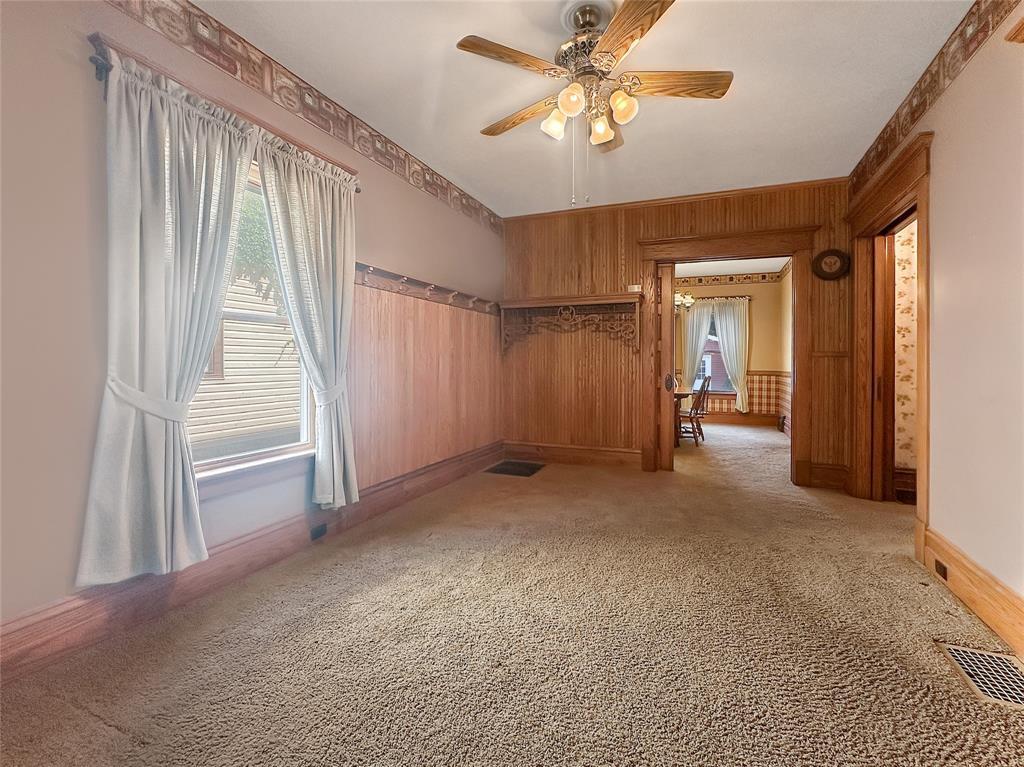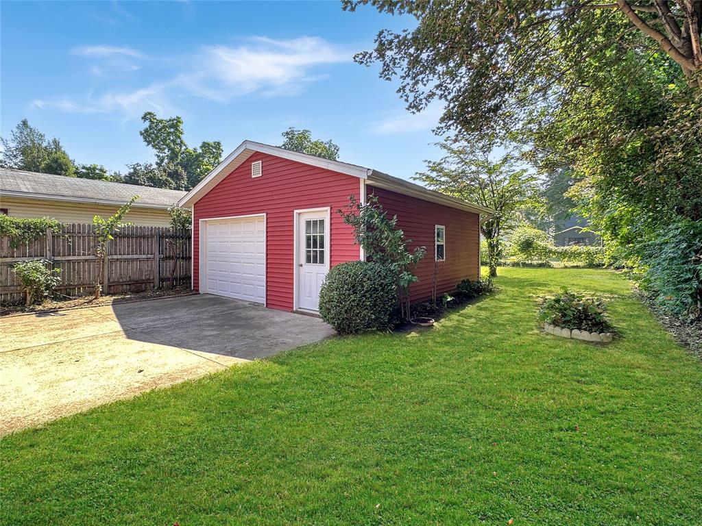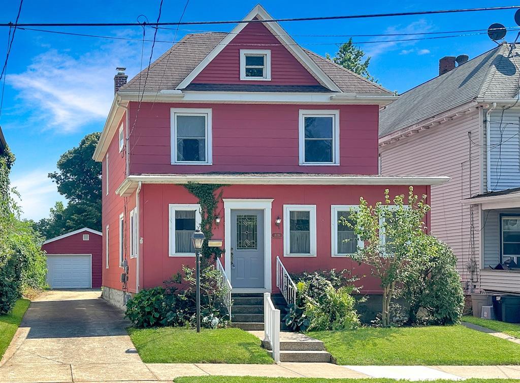 This spacious Craftsman-style home boasts 4 bedrooms and 1.5 baths with beautiful oak woodwork throughout. The first-floor features 9' ceilings, a comfortable Living Room, a Den, spacious Kitchen with pantry area, enclosed, heated Front Porch, Laundry Room and a convenient Half Bath. Additional amenities include updated windows, a cozy covered back porch, and a remodeled 1.5-car detached garage equipped with an electric opener. Notable highlights include Central Air Conditioning for added comfort. Easy access to the attic via stairs for extra storage. Full basement with an exterior entry. Concrete driveway, private yard behind the garage is perfect for a garden!
