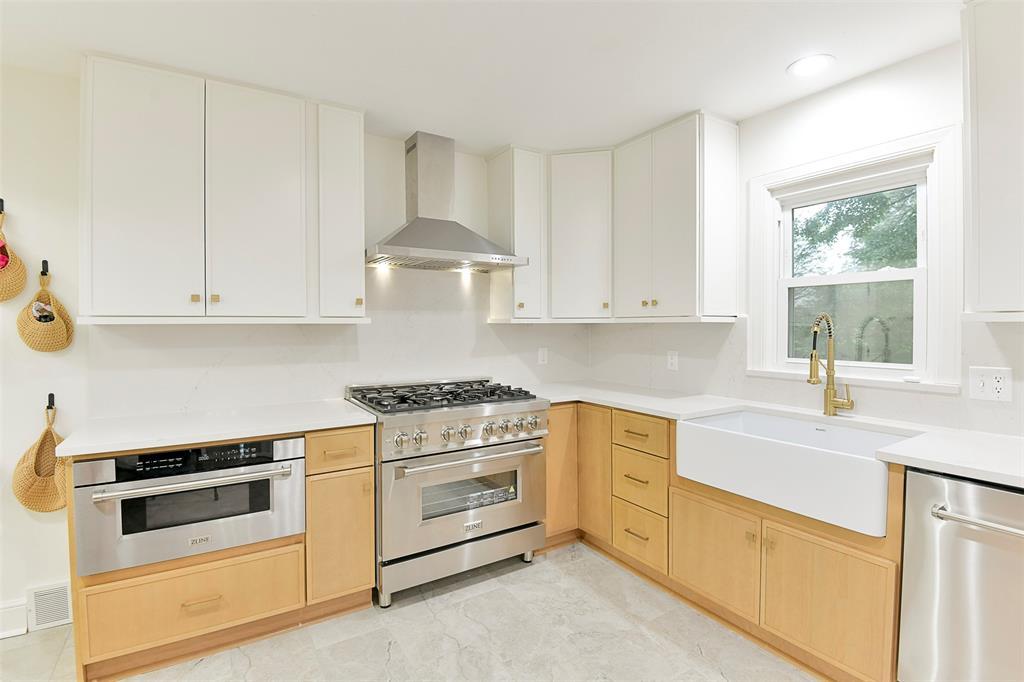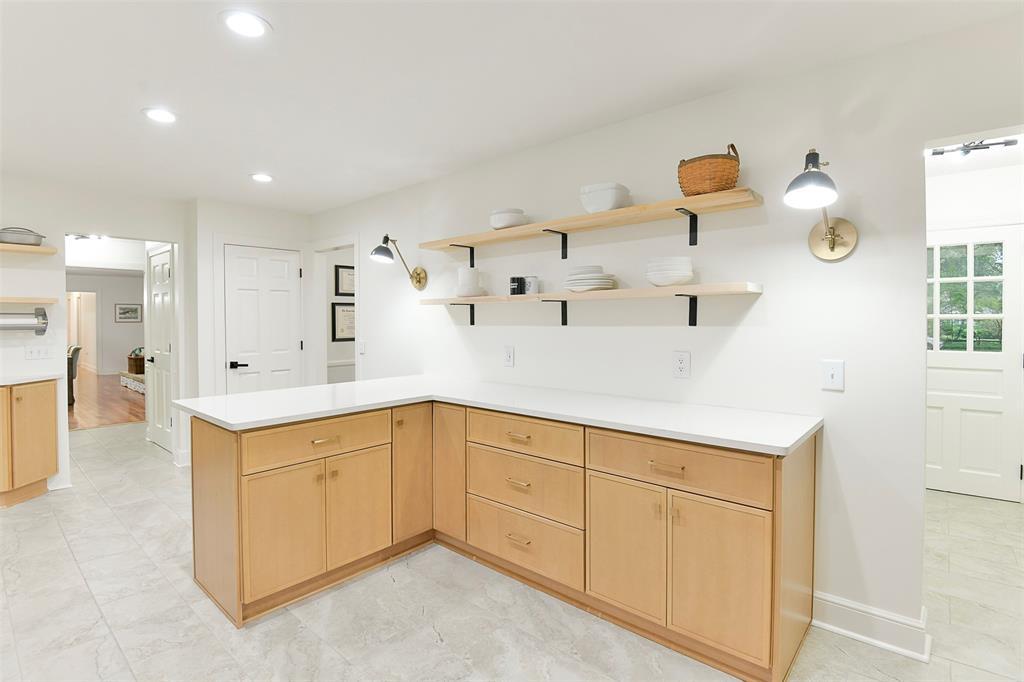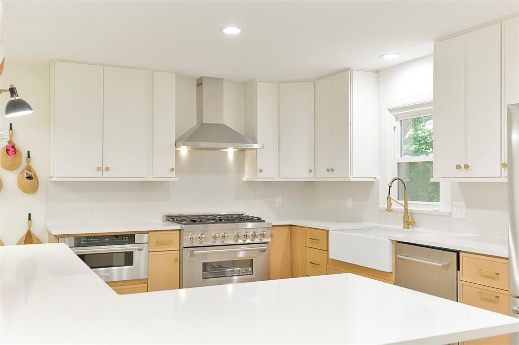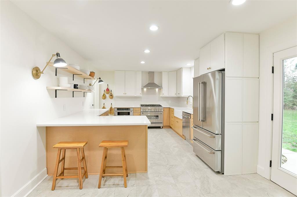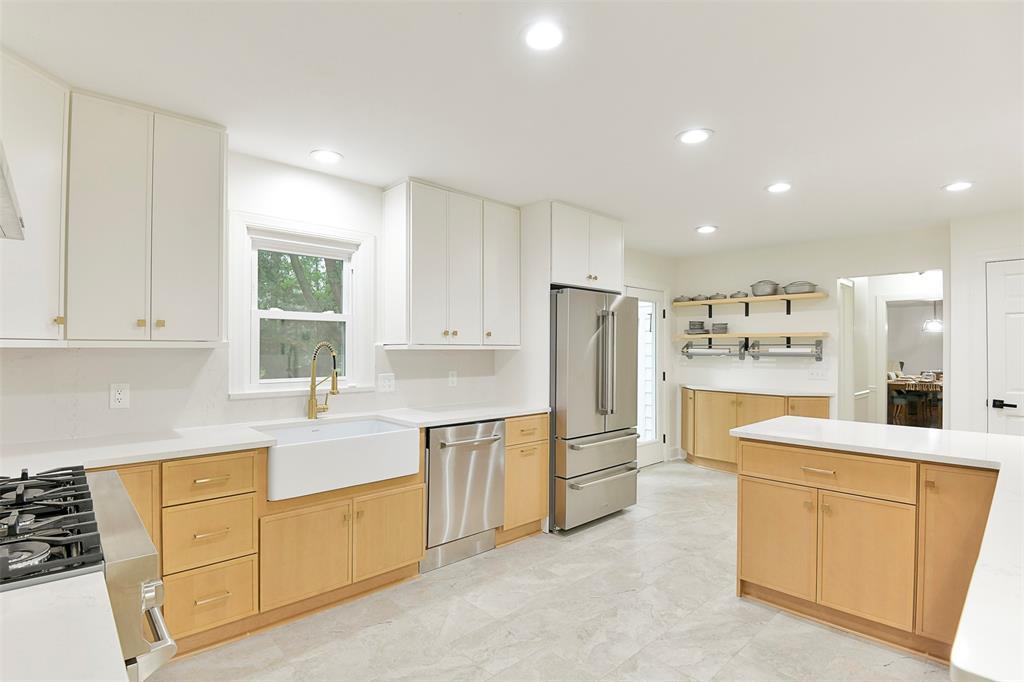 STUNNING Brick Ranch on PICTURISQUE Private Road Features Professionally Remodeled Kitchen and Baths. Enjoy cooking in your gourmet kitchen with new luxury appliances that include a dual fuel range and built-in microwave drawer, quartz countertops and backsplash, tons of storage in your butler's pantry and ample fresh herbs from your herb garden. Imagine entertaining in your open concept living room dining room that opens to your large and private backyard and INCLUDES all the gorgeous Arhaus Furniture (Talluride Table and Coburn Sectional). Spacious Office also comes furnished with beautiful Arhaus Desk. The sleeping quarters have a second master suite and newly added laundry room and third full bathroom. Additionally, this home includes a new 20'X10' shed with zero turn mower.