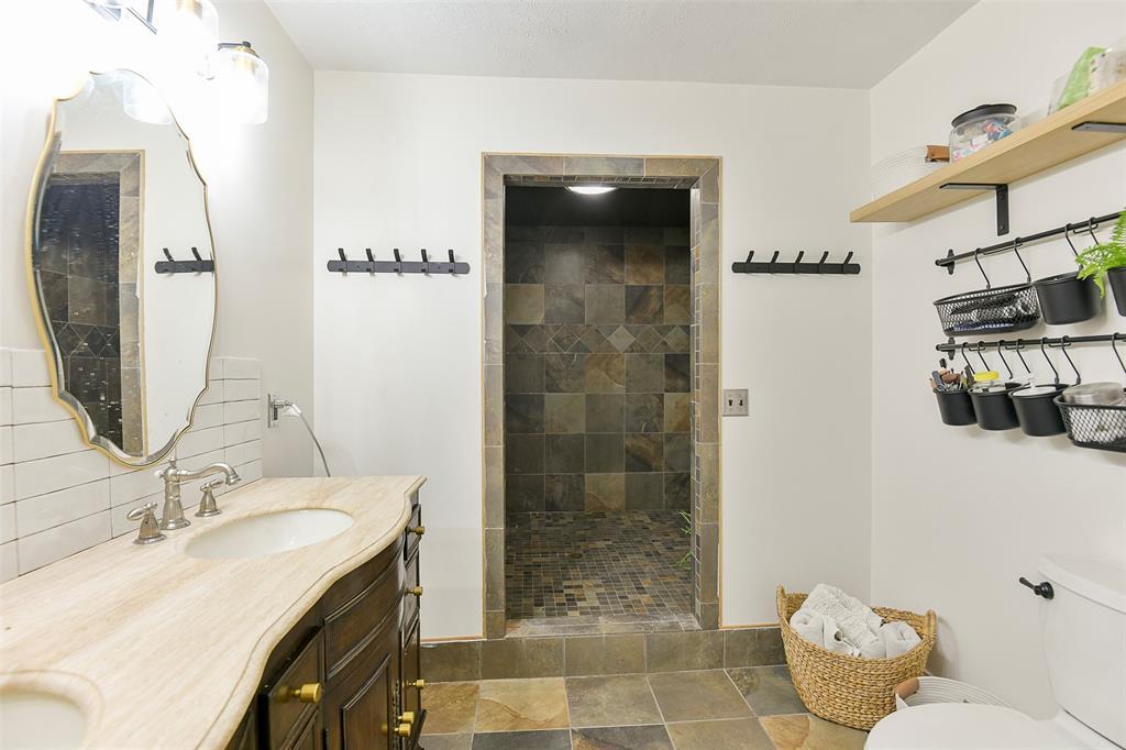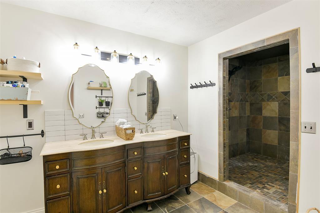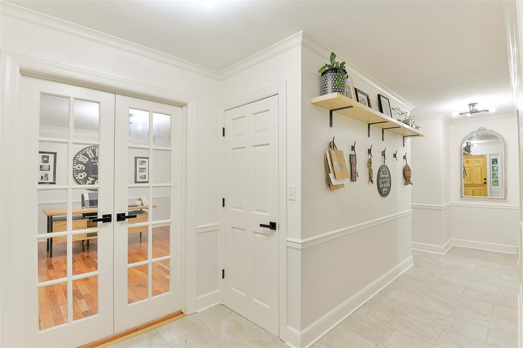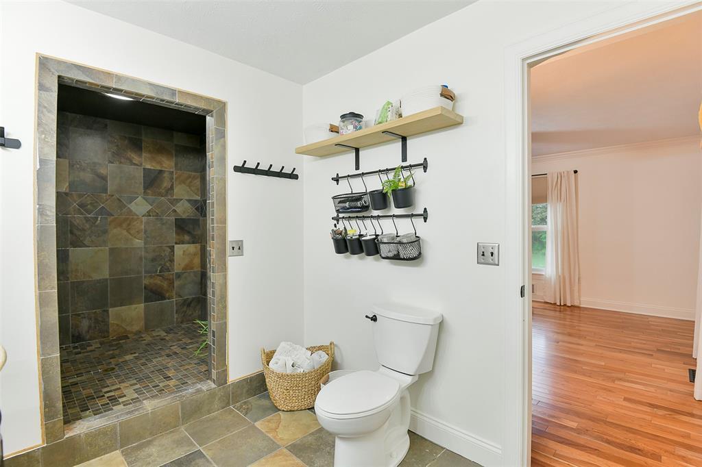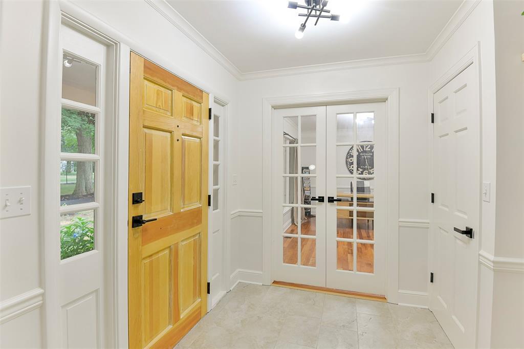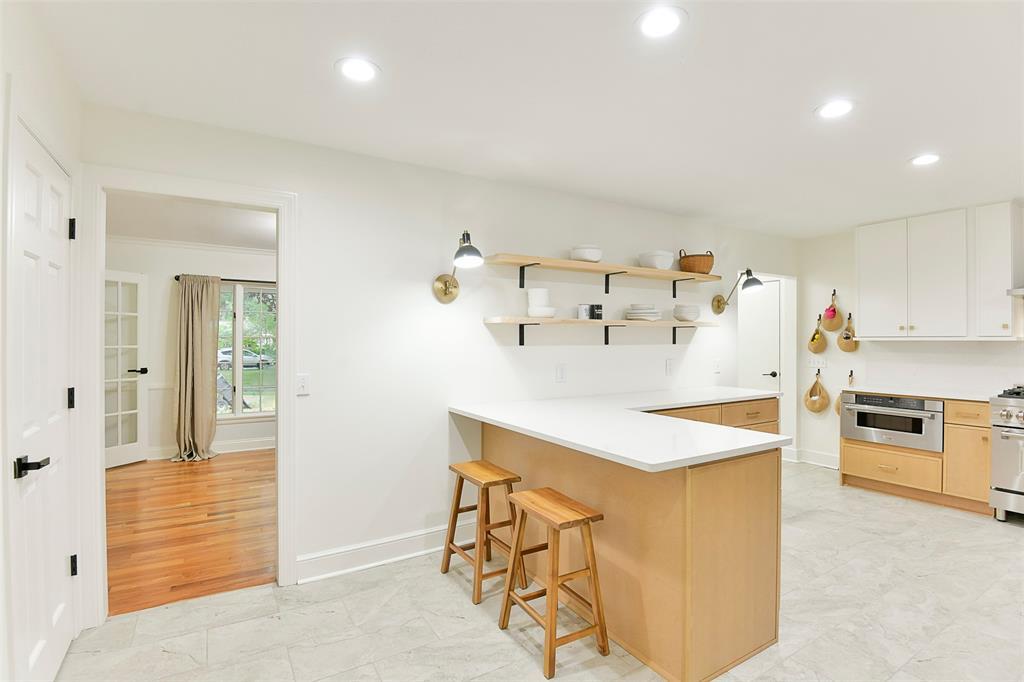 STUNNING Brick Ranch on PICTURISQUE Private Road Features Professionally Remodeled Kitchen and Baths. Enjoy cooking in your gourmet kitchen with new luxury appliances that include a dual fuel range and built-in microwave drawer, quartz countertops and backsplash, tons of storage in your butler's pantry and ample fresh herbs from your herb garden. Imagine entertaining in your open concept living room dining room that opens to your large and private backyard and INCLUDES all the gorgeous Arhaus Furniture (Talluride Table and Coburn Sectional). Spacious Office also comes furnished with beautiful Arhaus Desk. The sleeping quarters have a second master suite and newly added laundry room and third full bathroom. Additionally, this home includes a new 20'X10' shed with zero turn mower.