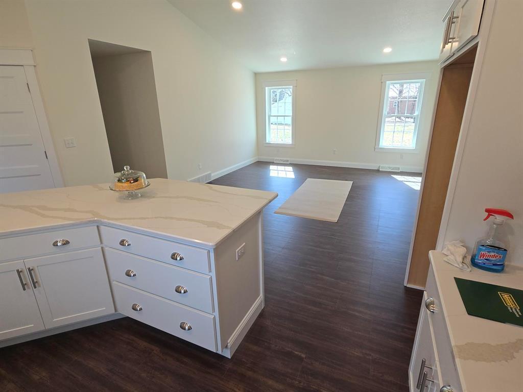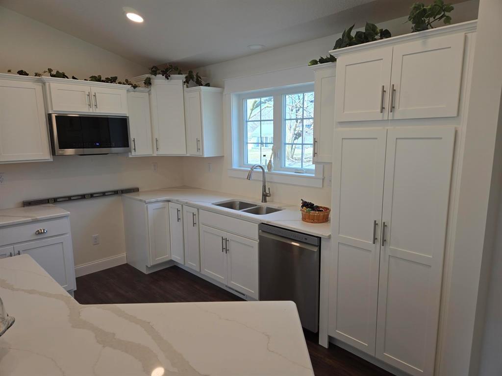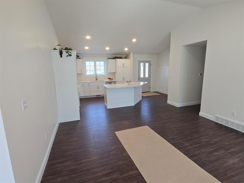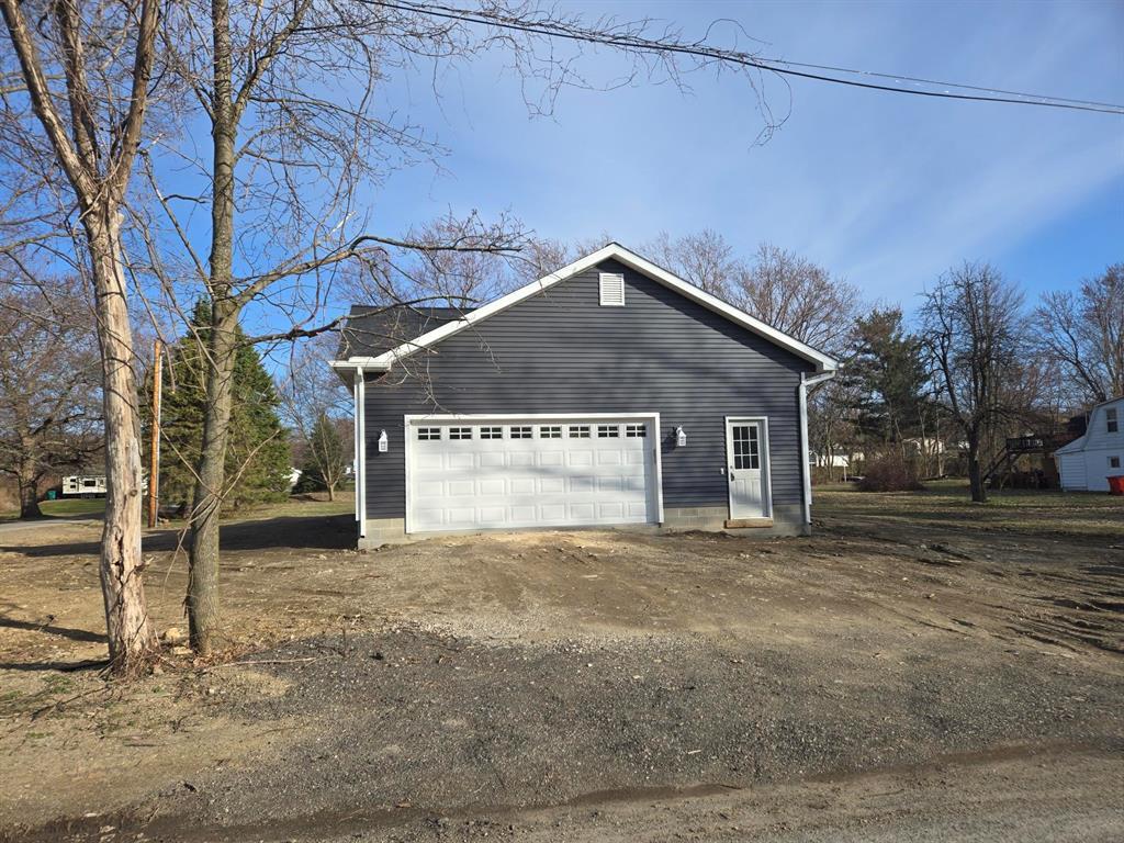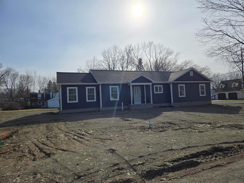 Detailed new construction from the beautifully appointed kitchen to the custom trim to the solid 2x6 walls and finished roomy insulated garage. Upgraded windows ,convenient laundry with wash tub, finished stairs to the ready to finish lower level. Light and airy with cathedral ceilings and easy to take care of floors. The cement is yet so be installed with a very wide driveway with room for an RV or boat and front and rear sidewalks and lawn planted. This is a John Radaker unique custom built gem!