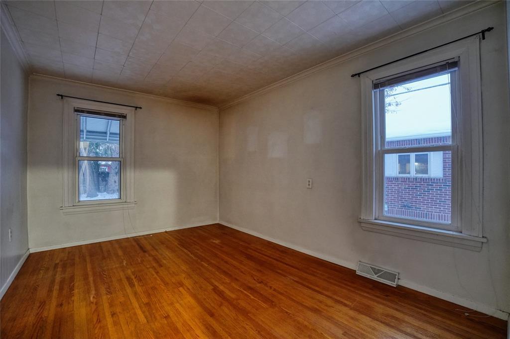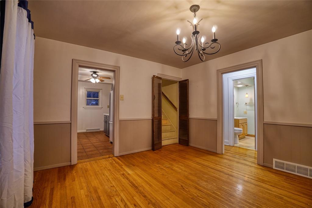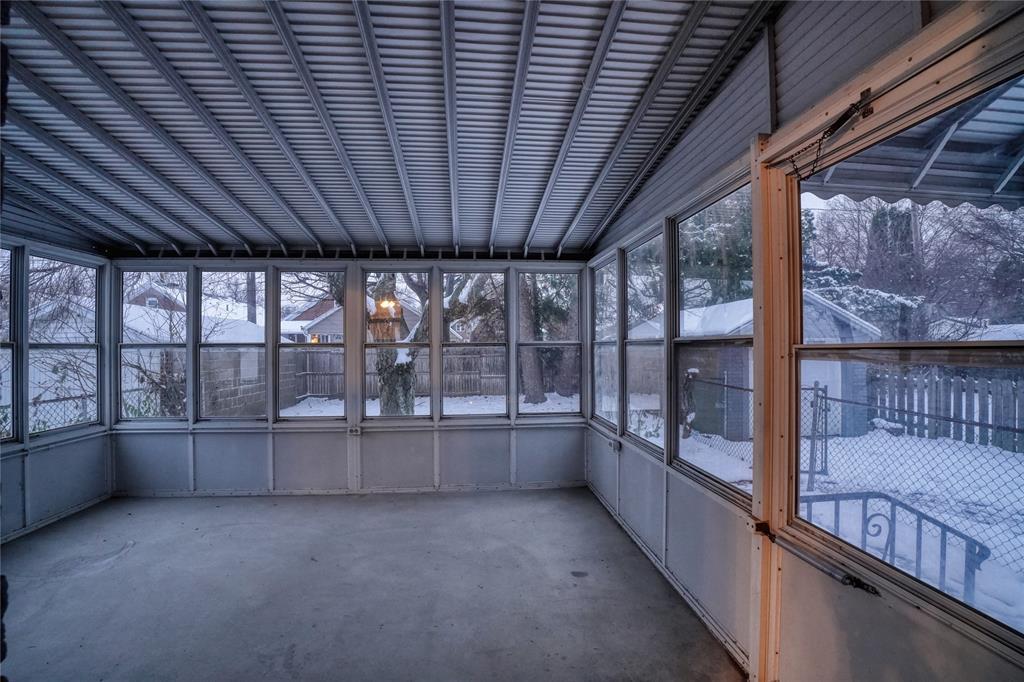 Charming 2-bedroom, 1-full-bath bungalow offering classic character and comfortable living. A covered front porch welcomes you into a warm living room highlighted by hardwood floors and an ornamental fireplace. The formal dining room provides an ideal space for gatherings, while the fully-applianced galley kitchen offers efficient functionality. An enclosed back patio serves as a bright sunroom—perfect for relaxing, hobbies, or indoor plants. Both bedrooms are conveniently located on the main floor, with a full bath nearby. Upstairs, the spacious attic features a finished bonus room that can be used as an office, guest space, studio, or playroom. Outside, enjoy a fenced yard ideal for pets, gardening, or outdoor entertaining, plus a 1-car detached garage for parking or storage. This delightful home blends charm, versatility, and comfort in a convenient layout ready for its next owner.