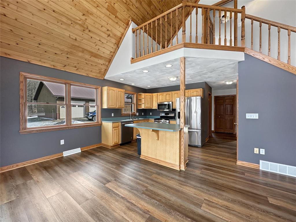 This scenic country home offers 2 bedrooms, 2 full baths and a beautiful view. Great room with newer flooring, cathedral ceiling and woodburning fireplace. Master bedroom, bath and loft upstairs. Large bedroom and office on the first floor. First floor laundry. Walk-out basement. No smoking. One year lease, renewable. Tenant pays for heat (propane), electric, phone, Armstrong internet, lawn care and snow removal. Available April 1, 2025. Tenant will have use of one garage space in the barn. Application acceptance subject to landlord approval. Link for application: https://www.rentapplication.net/apply/remax-brianj