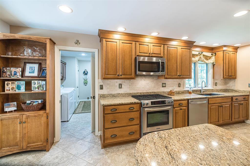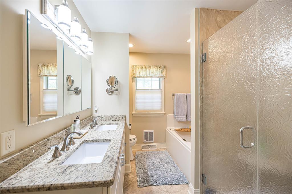 This Greenbrier home is charming yet completely updated! It features a handsome remodeled kitchen w/granite counters, rich maple cabinetry & newer flooring. There's a nifty bar area, ideal for indoor or outdoor entertaining since it's close to the newer stamped concrete patio and firepit. There's a grand spacious living room w/a newer picture window & a lovely great room highlighted with a brick fireplace. The first floor master offers sliding glass doors with views of the treed backyard & a gorgeous newer bathroom & huge walk-in closet/dressing room. New hardwood highlights the brick accent wall in the foyer and 2nd floor...where you will find 3 generously-sized bedrooms plus a remodeled full bath w/a separate shower/toilet area. The lower level is fun for the kids & includes a newer half bath. There's also a new roof (2022), new hot water tank (2024) & new furnace (2025!). All of this and on a .64 acre treed, private lot in the Fairview school district!
