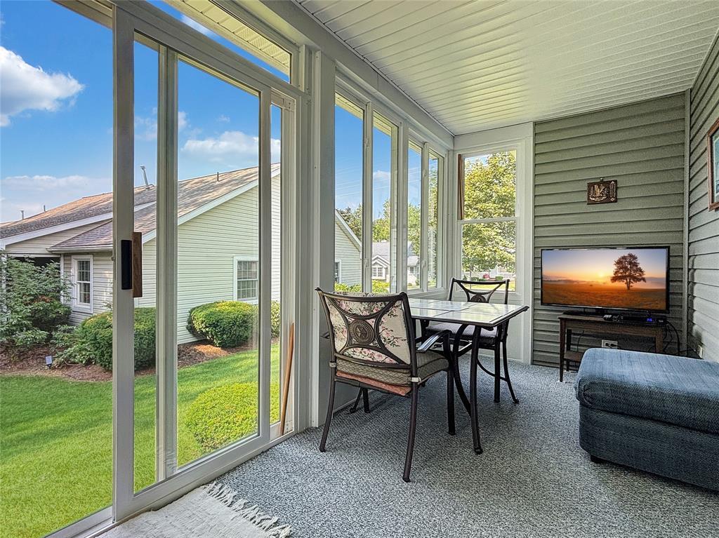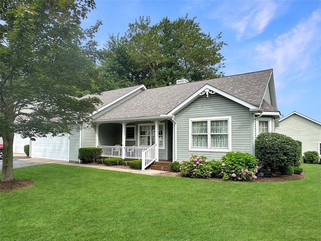 Welcome to this well maintained, one-owner condo in desirable Glenwood Hills Place. Offering the perfect blend of convenience and comfort with effortless, one-floor living. This charming 2-bedroom, 2-bathroom end unit, boasts a country feel in a central location bordering neighborhood green space, allowing relaxation and enjoyment. Modern updates include granite countertops that elevate the kitchen's style, an enclosed 3-season sunroom, and refreshed flooring in both bathrooms. Enjoy year-round comfort provided by a relatively newer furnace and A/C unit, (2018) The primary bedroom offers a walk-in closet and a private bathroom. Convenient first-floor laundry facilities, a generous two-car attached garage, and a full basement provide ample storage space.