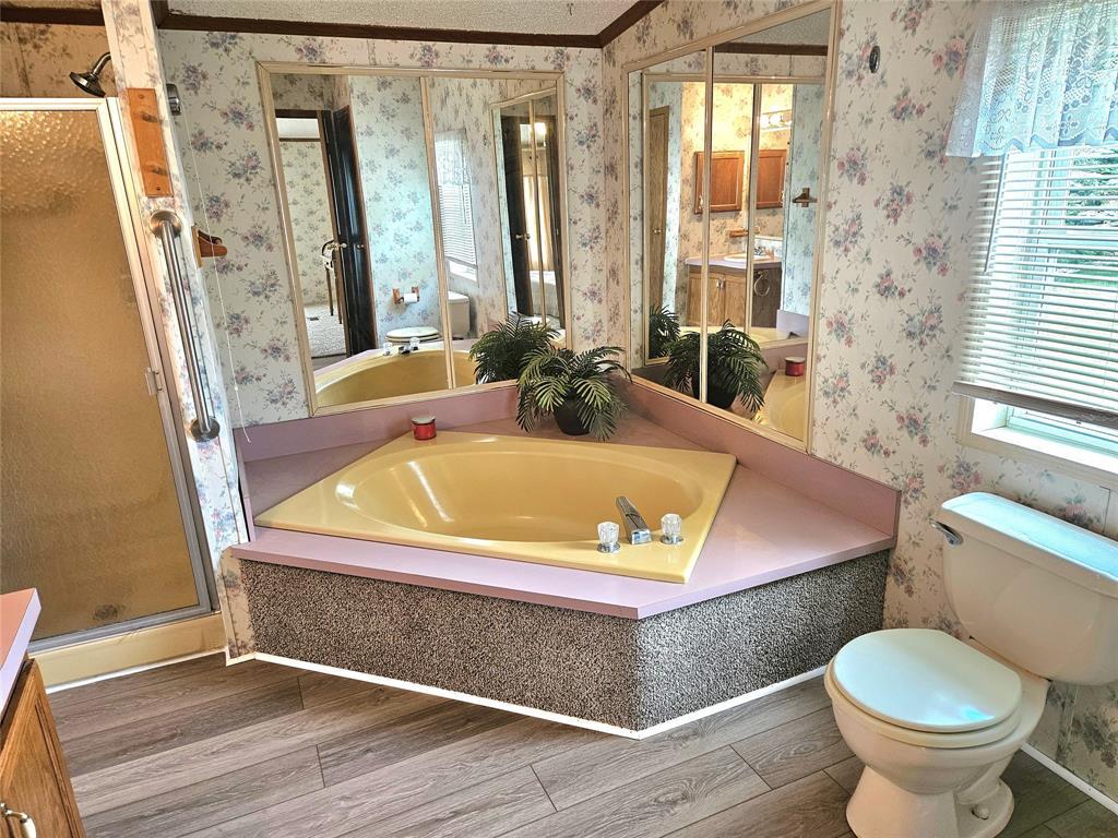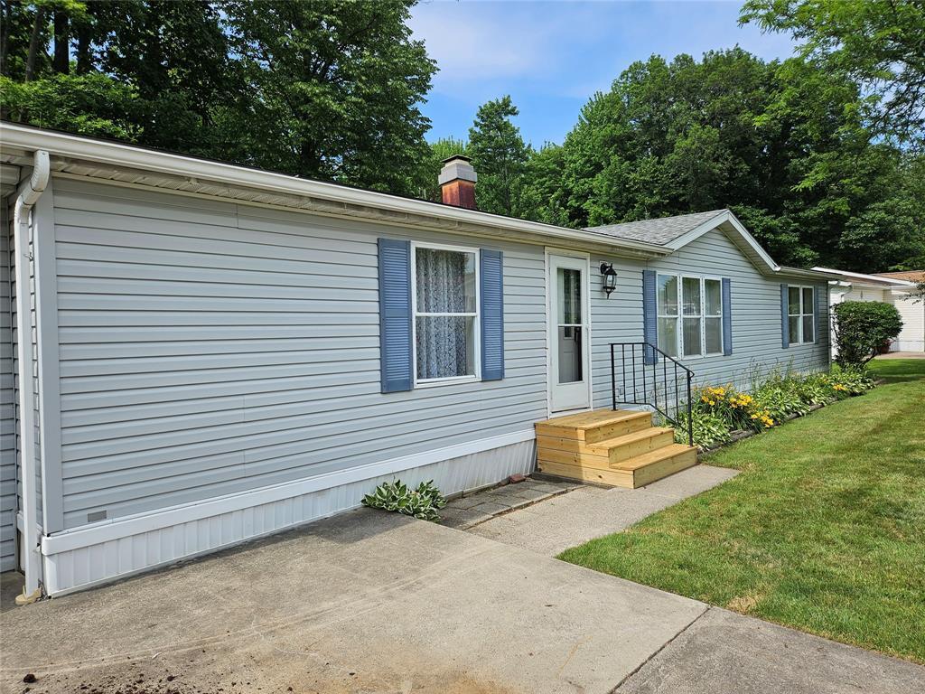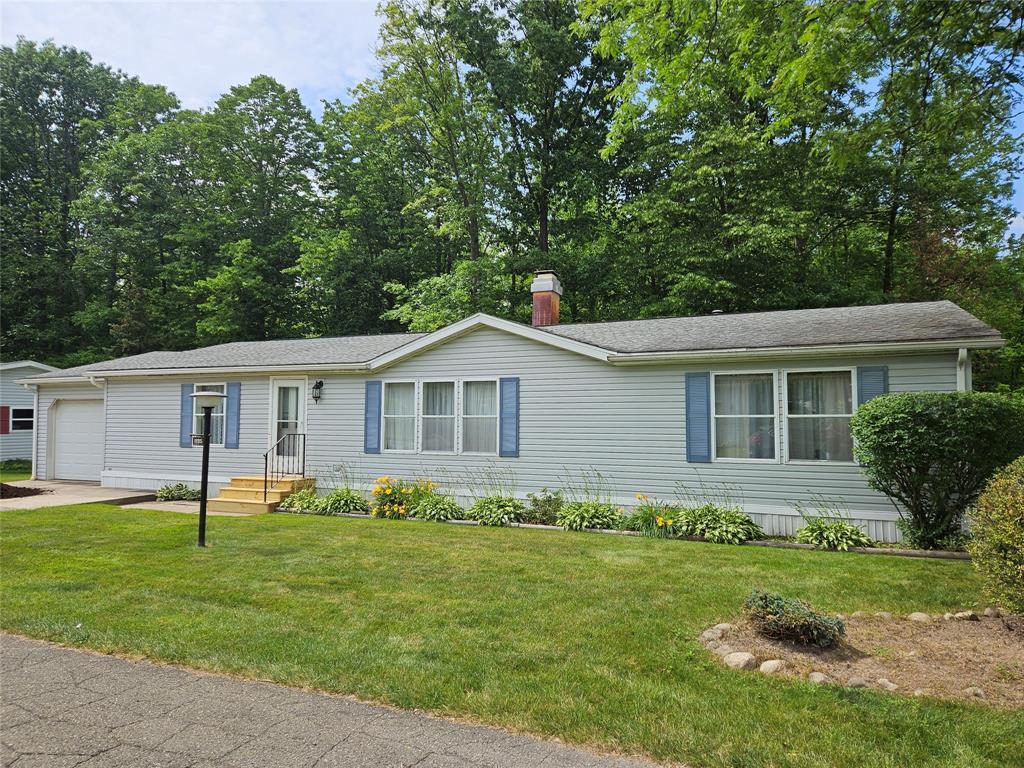 Welcome home...This wonderful three bedroom home offers an open floor plan, living room with woodburning fireplace formal dining area, bright kitchen with appliances, laundry with washer and dryer, single car attached garage and oversized deck all on a fabulous, wooded lot! 55+ mobile home community. Park approval is required!
