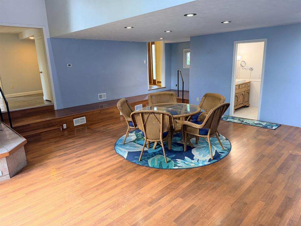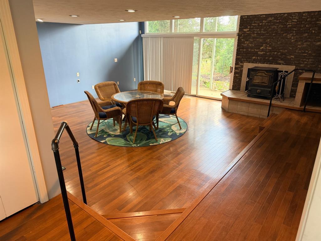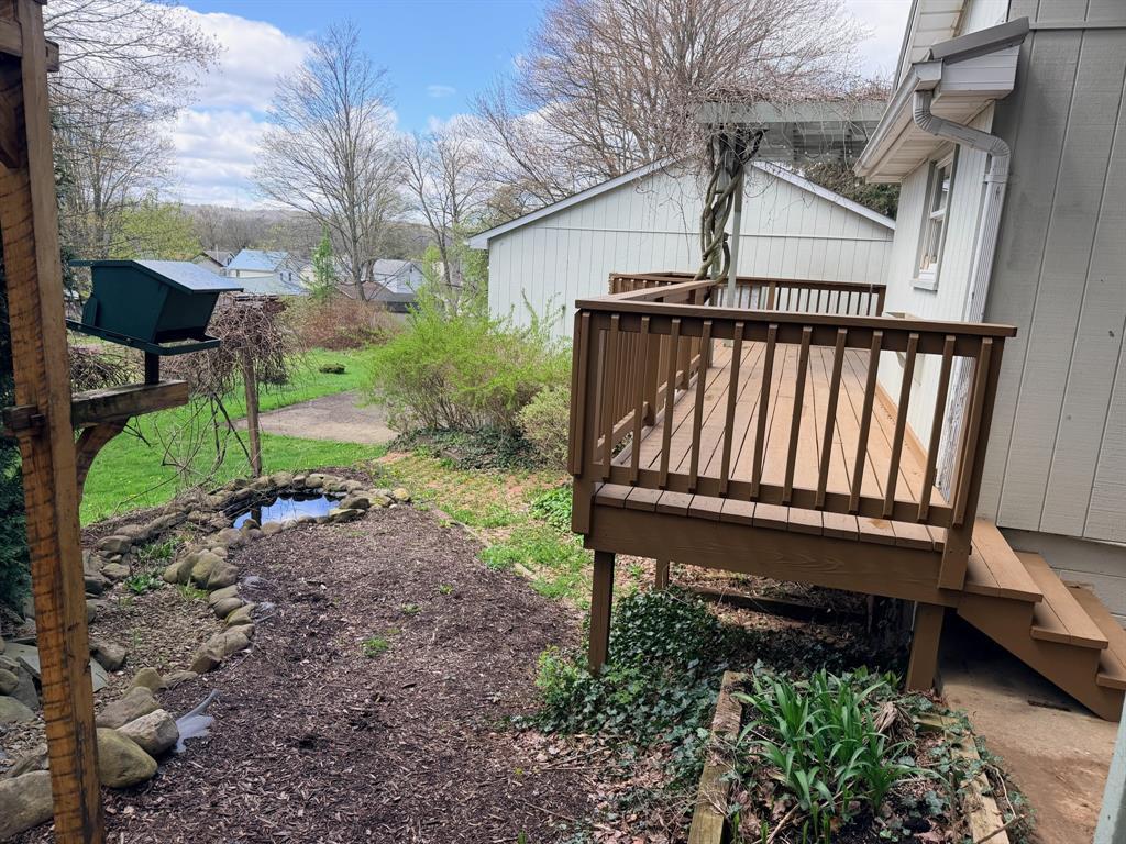 This spacious 4-bedroom, 2 full bath home offers plenty of room for comfortable living, relaxation, and entertaining. The inviting sunken family room, centered around a cozy wood-burning fireplace, creates the perfect gathering space year-round, with large sliding doors that open to a patio overlooking the backyard and charming pond. The home also features a bright living room and a formal dining room, ideal for hosting family and friends. The modern kitchen is equipped with granite countertops and a convenient island, making meal prep and casual dining both easy and enjoyable. Enjoy the comfort of updated, spacious bathrooms, while original hardwood floors, rich wood trim, and a classic staircase add warmth, character, and timeless appeal throughout. Outside, the quaint lot and detached 2-car garage provide ample space for storage and parking, completing this well-rounded property.