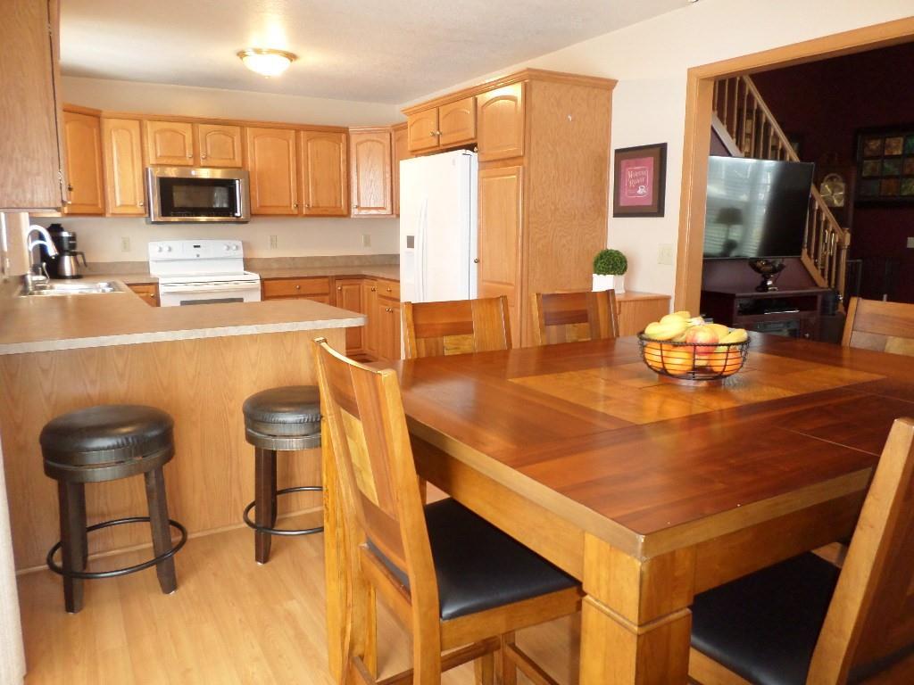 Welcome to this meticulously maintained home in Harbor Ridge! Featuring an oak kitchen with hardwood floors and kitchen appliances, a spacious first-floor master suite, and a vaulted living room with an open oak stairway. Upstairs you'll find two generous bedrooms and a full bath. Recent updates include a new hot water tank, newer water softener system, furnace, and central air. Enjoy entertaining on the back covered patio and large concrete pad. This home is wired for surround sound and ready for you to move in!