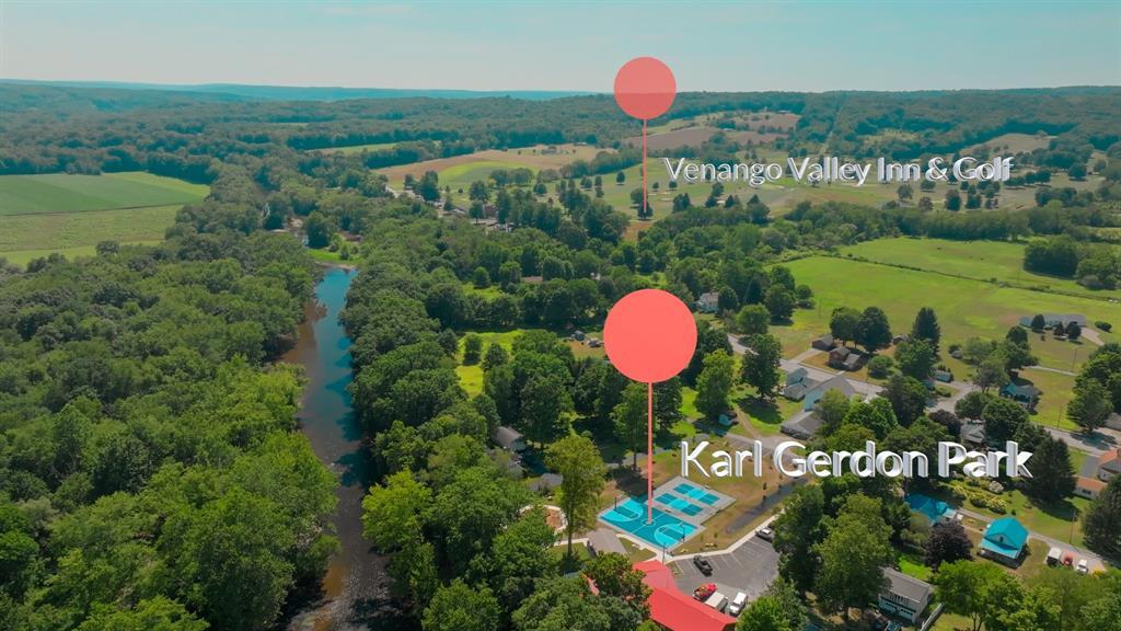 Welcome to this meticulously updated historic NW PA home! This private 5+ acre estate, set along the banks of French Creek, is an outdoor enthusiast's paradise. You'll find creek front access for fishing, kayaking & more. Situated just steps from Venango Valley Inn & Golf Course, it's also a golfer's dream. Inside, this luxury property has been lovingly restored w/original hardwood floors, built-ins & coffered ceilings that add a touch of timeless sophistication. The main floor primary suite is a lavish retreat, complete w/wood-burning fireplace & spa-like ensuite. The home's versatile layout includes a private library, a finished lower level w/2nd kitchen & ample space for a home office or rec room. Outside, enjoy private trails, fenced gardens & an expansive patio. The heated, 3-car garage w/EV charging station provides plenty of room for vehicles & gear. This exceptional Crawford County property offers space, privacy, & a remarkable connection to nature you won't find anywhere else.