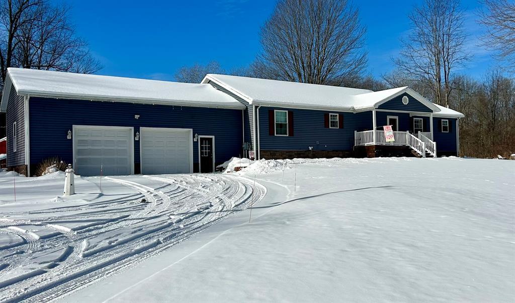 Escape to the peace and privacy of country living on this spectacular 10-acre estate! Built in 2011, this meticulously maintained 4-bedroom home offers the perfect blend of comfort and rustic charm. The main level features a luxurious master suite, a cozy wood-burning fireplace, a walk-in pantry, and the ultimate winter luxury—heated floors. Head downstairs to the incredible finished lower level, featuring a game room, family room, and a standout saloon-replica bar perfect for hosting. Outdoor enthusiasts will love the awning-covered deck, chicken coop, and private enclosed hunting stand. With an attached insulated 2-car garage plus a massive 28x32 detached outbuilding, there is room for every toy! Note: Sale is contingent on sellers finding suitable housing.