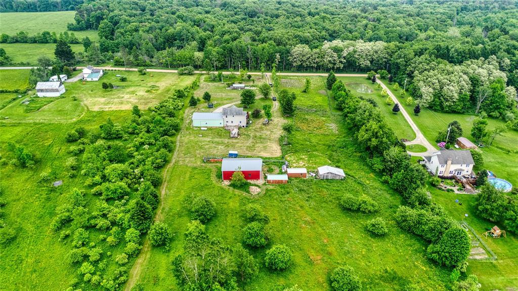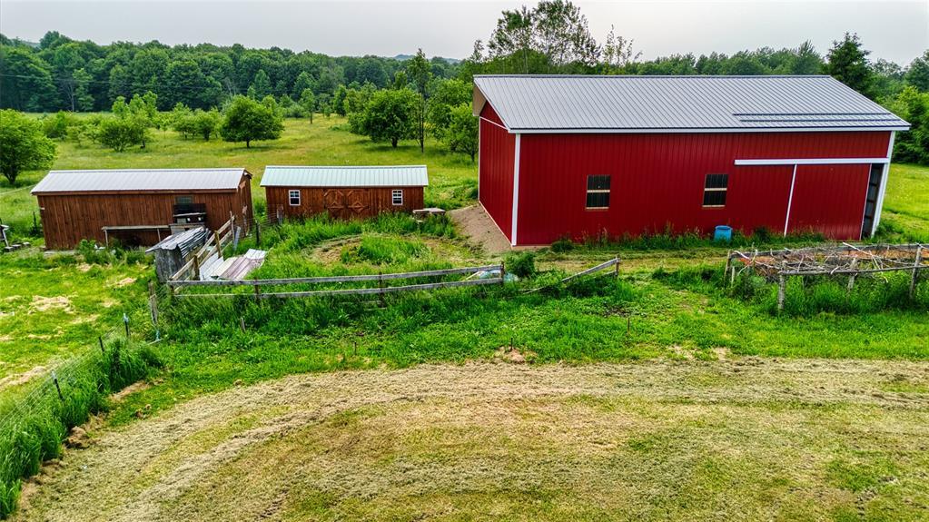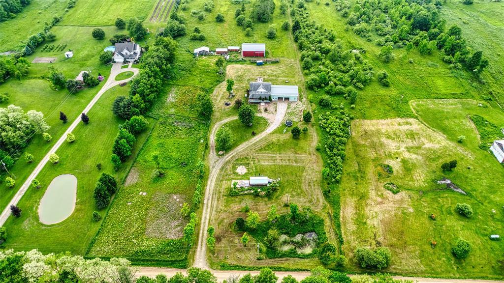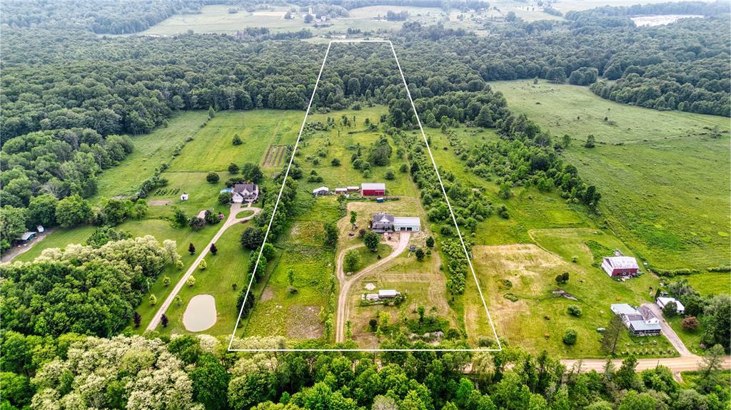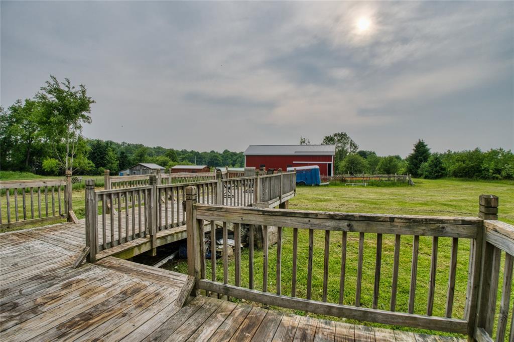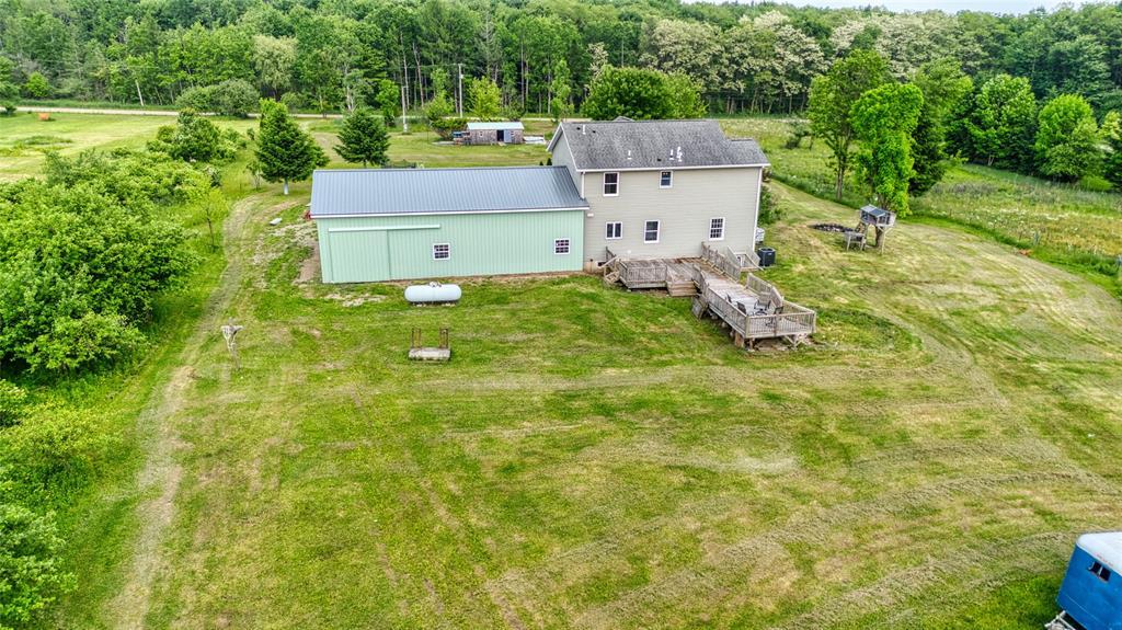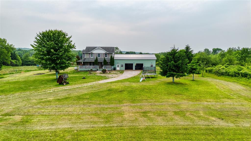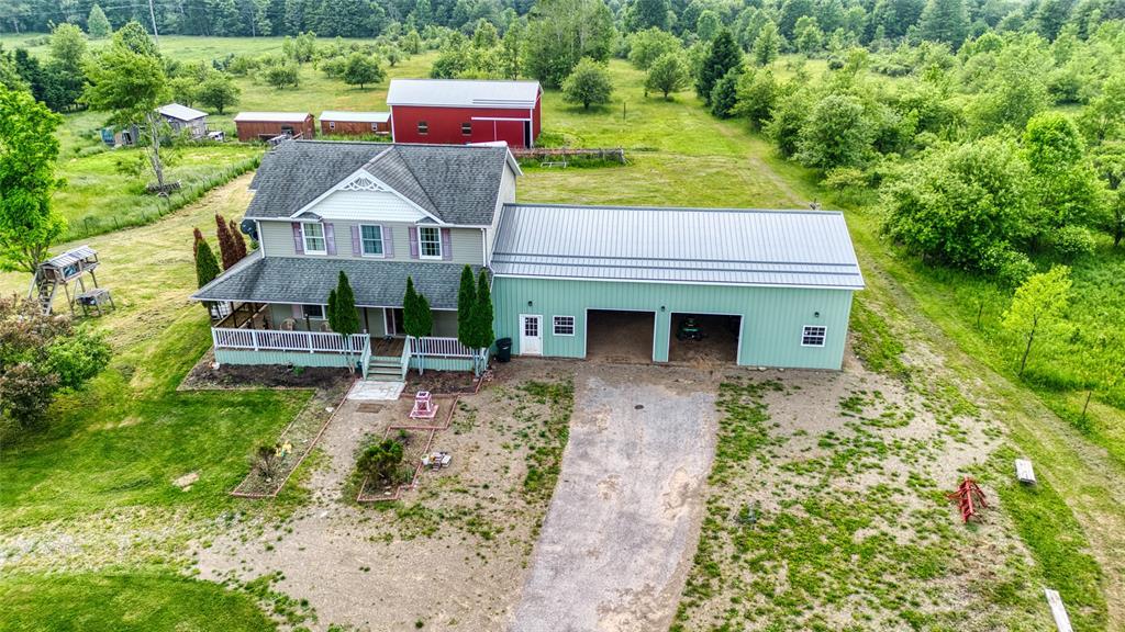 Nestled in a serene country setting, this beautiful two-story, 3-bedroom, 2.5-bath home sits on 20 picturesque acres in Bloomfield Township. The spacious layout features a large living room, eat-in kitchen with center island, formal dining room, and first-floor laundry. The expansive primary suite offers a walk-in closet and a luxurious ensuite with dual sinks and soaking tub. A massive attached garage adds convenience and storage for vehicles, tools, or workshop use. Enjoy peaceful views from the back deck or relax on the covered front porch. Outdoor amenities include a huge pole barn with metal roof and a separate shed—ideal for equipment or recreation. With abundant wildlife and wide-open space, this property is perfect for those seeking privacy, nature, and room to roam. Whether you’re entertaining, unwinding, or exploring, this versatile country retreat delivers it all.