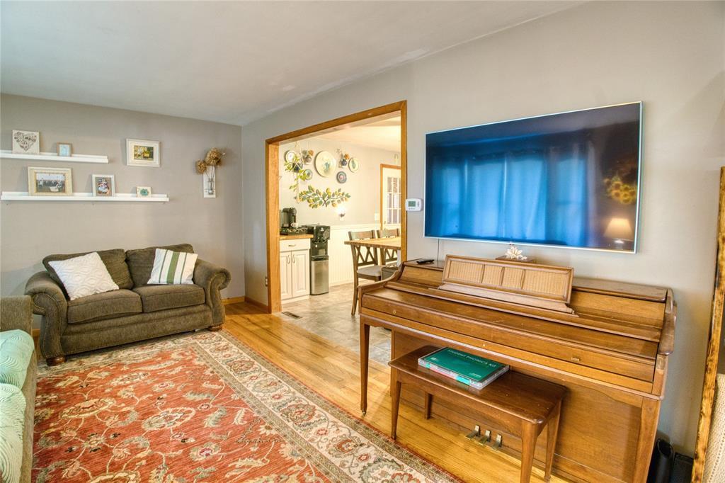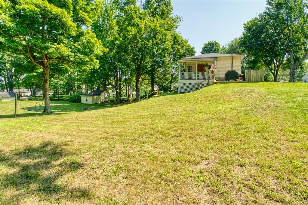 This charming single-story home offers comfortable and stylish living with beautiful hardwood floors flowing through the main level. The spacious eat-in kitchen is a standout, featuring an island, tiled backsplash, white cabinetry, butcher block countertops, and stainless steel appliances—perfect for both everyday meals and entertaining. The large primary bedroom offers a peaceful retreat with modern paint colors that create a fresh, inviting ambiance. A finished lower-level family room provides additional space for relaxing or gathering. Step outside to enjoy the covered side deck, ideal for outdoor dining or simply taking in the view. The 1-car attached garage adds convenience, while the nicely landscaped yard spans a generous 3/4 acre, offering plenty of room to enjoy nature or garden. A storage shed adds extra functionality, making organization a breeze. This well-maintained home combines comfort, style, and space in a serene setting—perfect for today’s lifestyle.