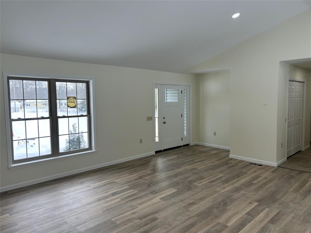 New ranch home w/ attached garage on over an acre of land in Vernon Township close to Roche Park, shopping, dining, and medical facilities. First floor features 3-bedrooms, 2-full bathrooms, mud/laundry room, living area, kitchen w/ large pantry & walk-out back deck. The lower level provides an additional 1200 sq ft + 3rd bathroom. Finishing touches currently being worked on. House has new flooring including tiled bathrooms & new carpeting in the bedrooms; neutral color palate; superior walls; polished cement in basement & garage + cemented sidewalk; 2'x6' exterior construction w/ vinyl siding + soffit & soft exterior lighting; roof with architectural shingles; electric overhead garage door; Pella windows; 36" doorways throughout; exterior doors; 200 amp electric; well drilled & connected; pressure tank; water heater; drain & water line; covered front porch; 14'x23' back deck. Taxes to be re-assessed upon completion. Price is for finished house.