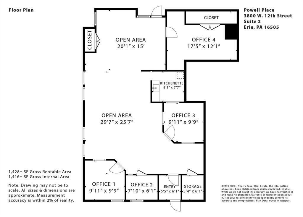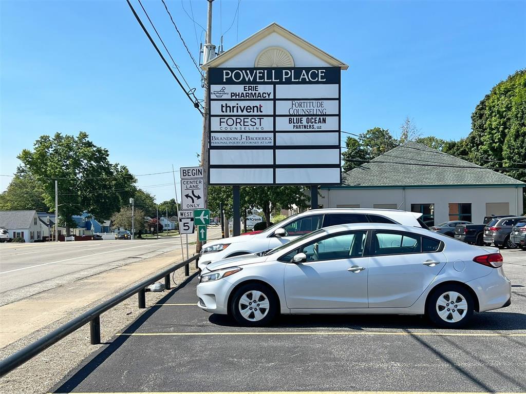 1,428± SF office suite available. Layout includes large open workspace with windows for natural light, 4 private offices, storage room, kitchenette & private entrance. 3D tour & floor plan available. Abundant free parking & excellent visibility. Situated along a high traffic corridor with 11,000 average daily traffic (PennDOT AADT, 2023). Easy egress with entrance at a signalized intersection. Centrally located & on the public bus route. Offered at $22.00/SF/YR - full service. Tenant pays $2,618/month with all utilities included. Join Blue Ocean Partners, Brandon J. Broderick, Erie Pharmacy, Forest Counseling, Fortitude Counseling, Thrivent & more at Powell Place!