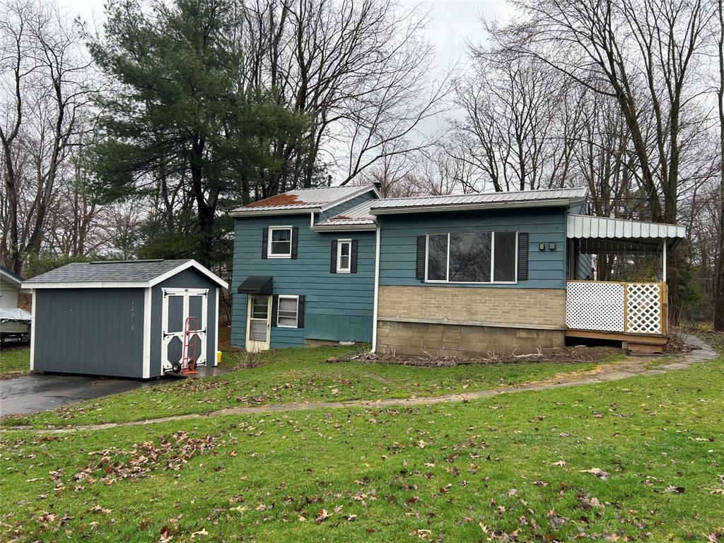 3-bedroom/1.5 bathroom home close to the lake in Konneaut Knolls Association. Property features newer oil furnace + tank, newer roof, and newer flooring in the living area. First floor laundry. Enclosed front porch off of the living room. Outside has newer awning, covered porch, and newer 8'x12' shed. Incredible location on the southeast side of the lake in Ice House Bay. Home recently had additional insulation added and is setup for year-round living in Conneaut Lake.