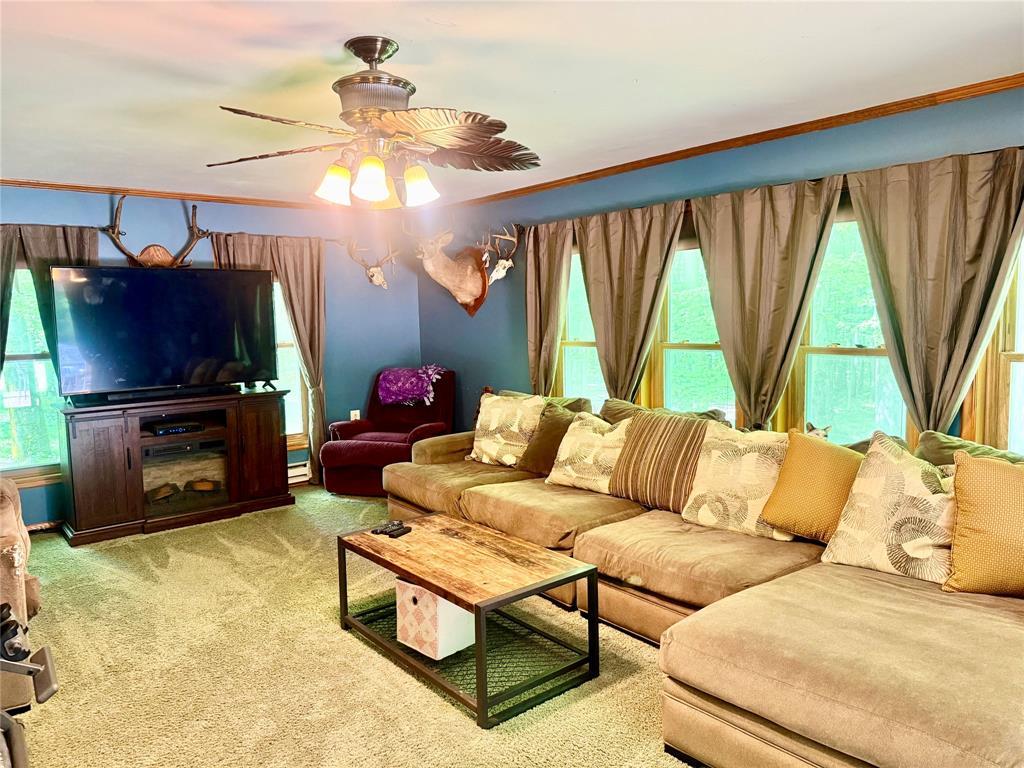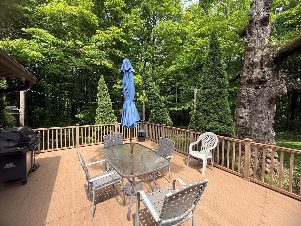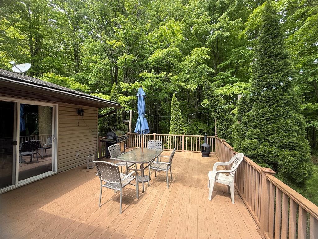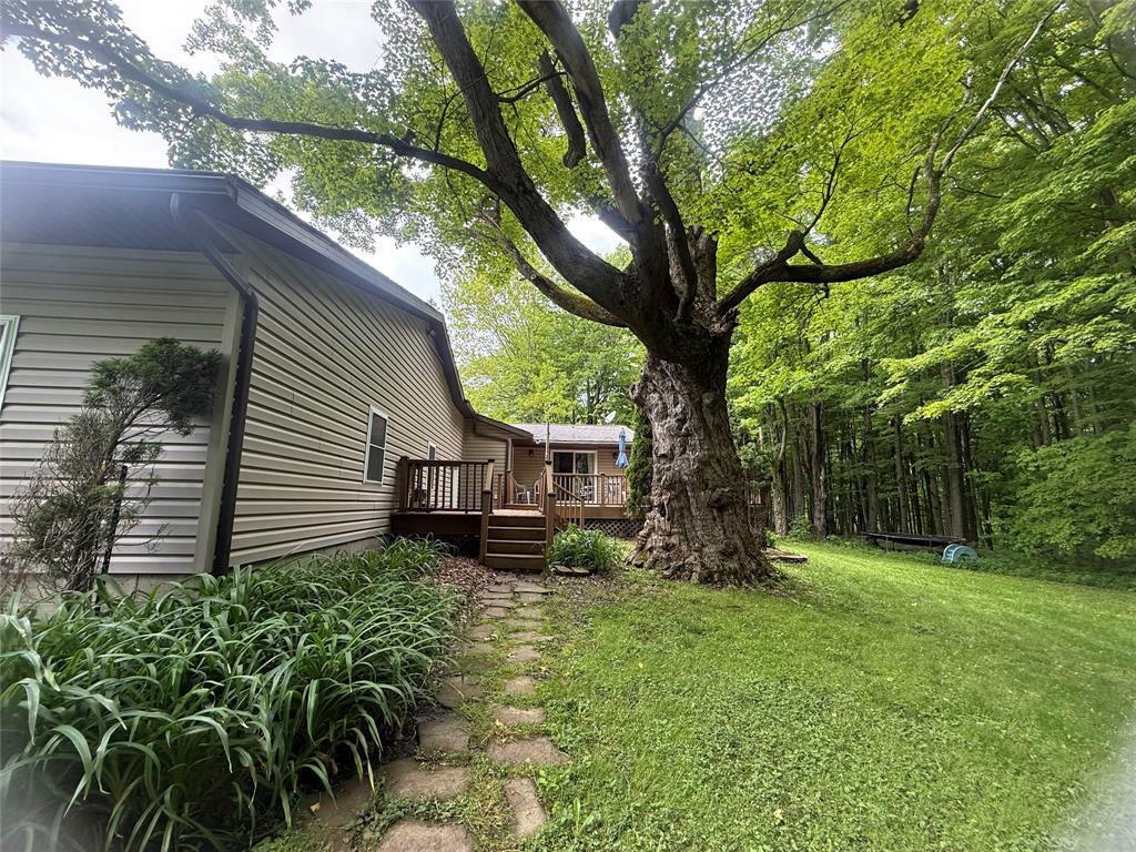 Wonderful country property with 41 wooded acres! A hunting paradise, or have fun riding the trails. This home is much larger than it looks, because of the beautiful great room addition. The kitchen features a large pantry and oak cabinetry. The mud room and laundry room are nicely located off the front porch w/ their own entry from porch or garage, there's also a 1/2 bath in this area. The DR opens to the great room which is the heart of this home. There's a wall of windows, fireplace and sliding doors to the TREX deck. The living room also opens to this room. Three bedrooms all w/ double closets and 2 full baths make this a terrific family home. The views of the woods from the deck and the delightful covered front porch are incredible!! There are 2 finished rooms in the basement . Brand new furnace and tankless HW. Outbuilding w/ concrete floor w/ electric for your toys. Enjoy the Summer in the above ground pool with its own deck. Invisible fencing. Special place to call home!!