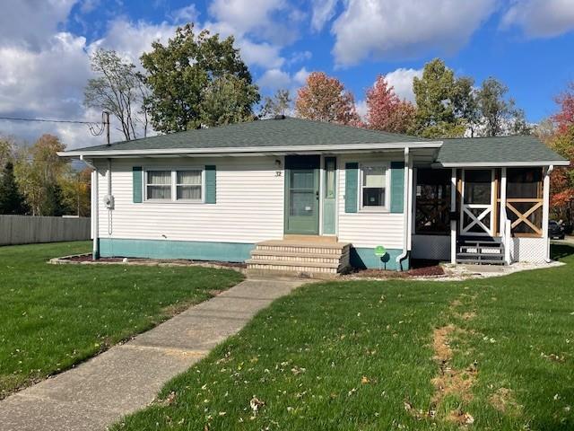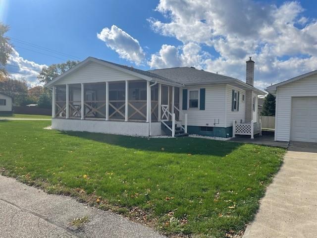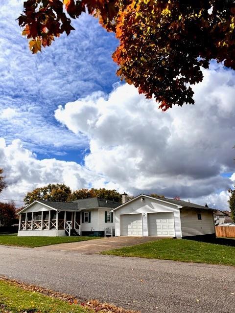 Welcome to this beautifully maintained 2-bedroom, 1-bath home nestled on a spacious corner lot. Step inside to find generously sized rooms, including a spacious primary bedroom created by combining two bedrooms - offering extra comfort and flexibility. The bright bathroom with ceramic tile flooring. The eat-in kitchen includes appliances and offers a cozy space for everyday meals. Enjoy peaceful mornings or relaxing evenings on the expansive 11' x 32' screened-in porch—ideal for entertaining guests or unwinding. The oversized 2+ car garage provides ample room for vehicles, storage, or a workshop. The full basement is already plumbed for an additional bathroom, offering excellent potential for future expansion. With numerous updates throughout, this move-in-ready home combines comfort, functionality, and value.
