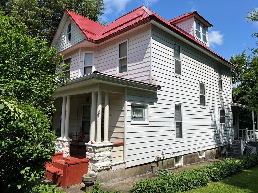Large duplex for sale in Cambridge Springs! Property features large rooms, high ceilings, beautiful woodwork, a relaxing front porch and a new metal roof! Third floor has lots of potential! All separate utilities, ample parking and property is being sold in as-is condition with all contents included!
