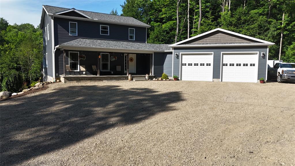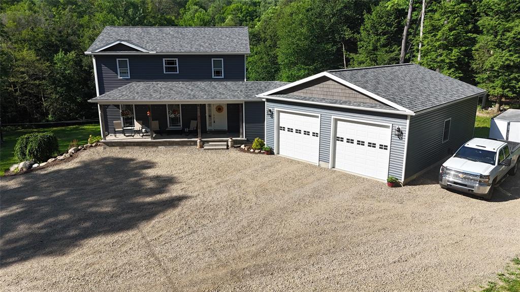 This is it! 2017 home in Fort LeBoeuf School District on 3 acres! Home features 3 beds, 3.5 baths, first floor laundry and a full basement that just needs your finishing touches! Open concept first floor with a walkout to a beautiful, fully composite deck overlooking the backyard. Second floor features an impressive primary suite with walk-in closet! Basement includes a modern full bath and walkout to a covered patio area! Heated 2-car attached garage, barn with loft and a heated additional outbuilding with lean to storage! Long driveway with a pond, creek, and tons of seclusion!