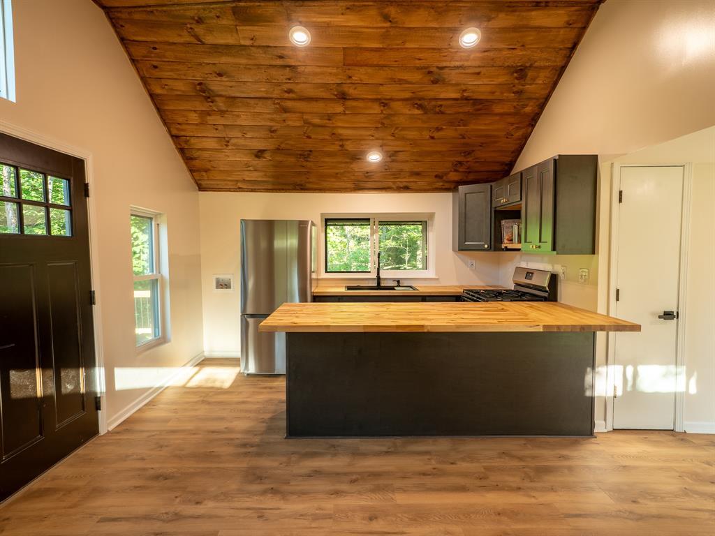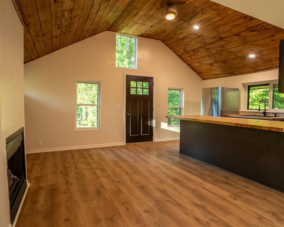 One photo was virtually staged. Fully Renovated Gem on 2.3 Acres - Move-In Ready! Welcome to this beautifully renovated home nestled on 2.3 private acres with a flowing creek in the middle of the property. Stripped down to the studs and rebuilt with care, this home offers modern comfort. Step inside to find stunning cathedral ceilings, an open layout, brand new flooring, and a cozy fireplace perfect for relaxing evenings. Most items are new, e.g. windows, doors, plumbing, gutters, HVAC and more. The kitchen is completely updated with fresh cabinetry, butcher block counter tops, and appliances, while the bathroom features modern fixtures and a clean, stylish design. Enjoy the fire pit, hiking through the woods, or the convenience of a storage shed. Make it yours today!