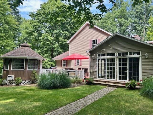 Secluded Splendor! This custom built home in Woodcock Township offers great features throughout! From the 2 story entry, you will begin to appreciate the craftsmanship in this design. Open Concept kitchen overlooking a family room area and sunroom with great views of the private decks and gazebo; First Floor Primary Bedroom with private bath, 2nd Bedroom and Full bath as well; Second Floor offering another Bedroom and den area, with full bath, lower level has mudroom/bonus room, 2nd family room, large laundry with walk-out; Great exterior space for entertaining, great acreage with ravine and stream and so much more. Saegertown Schools.