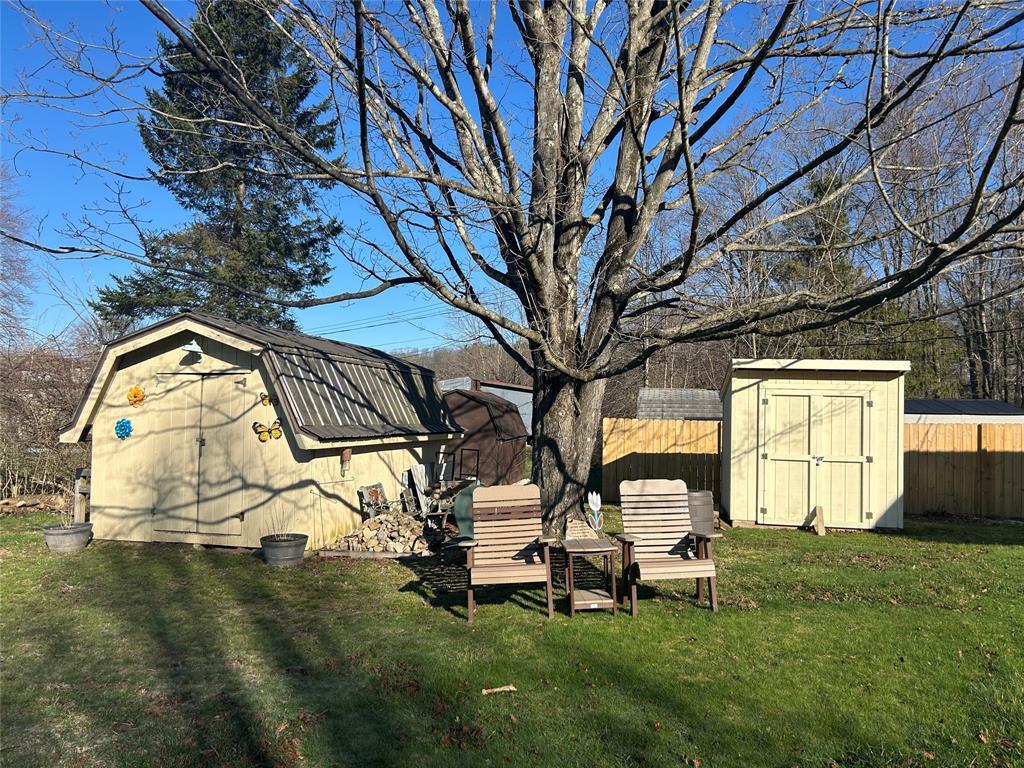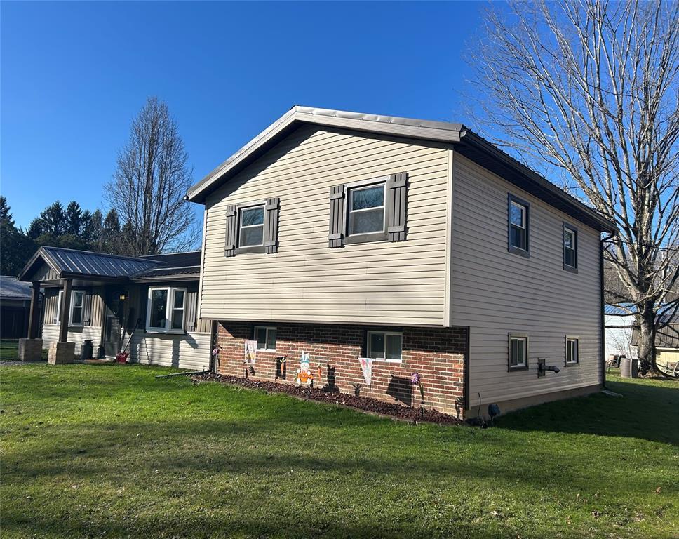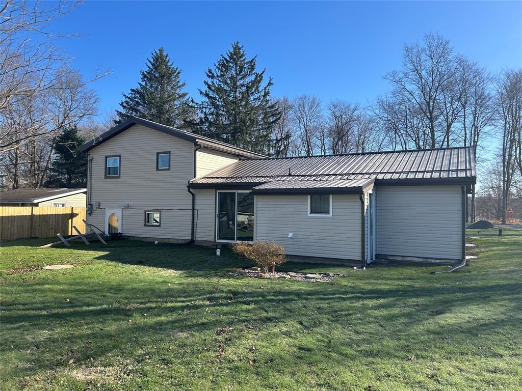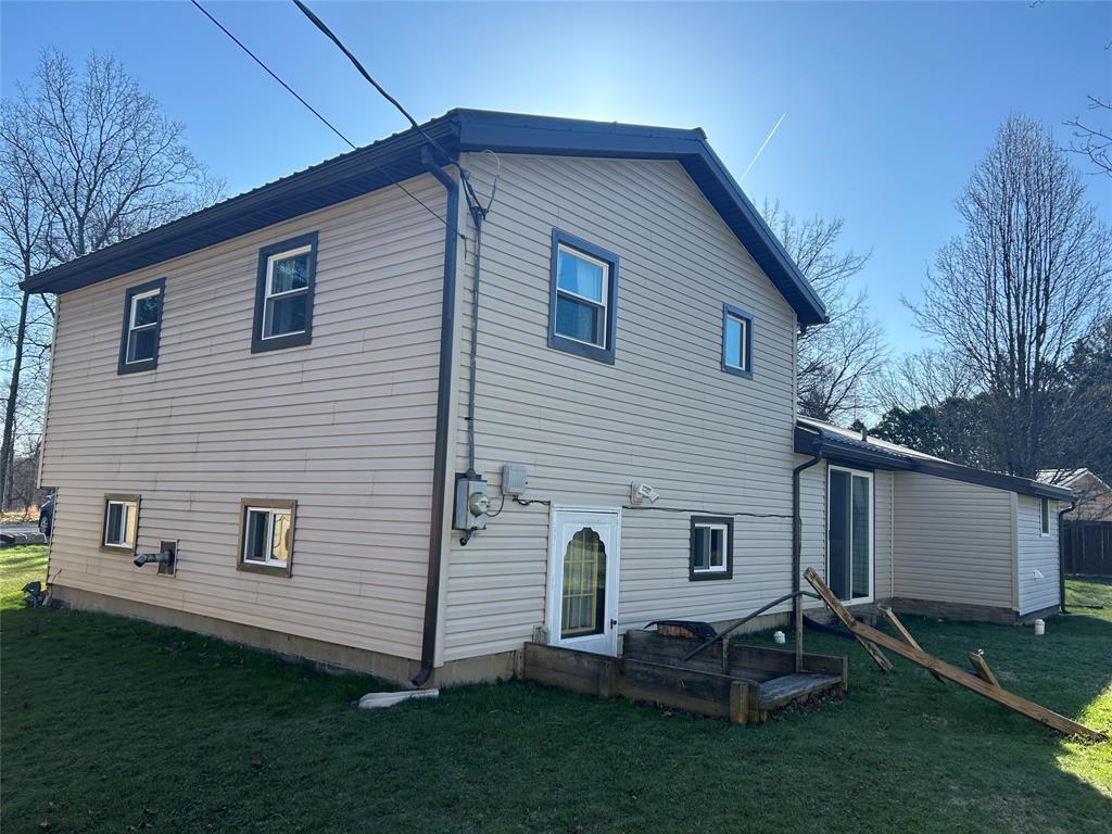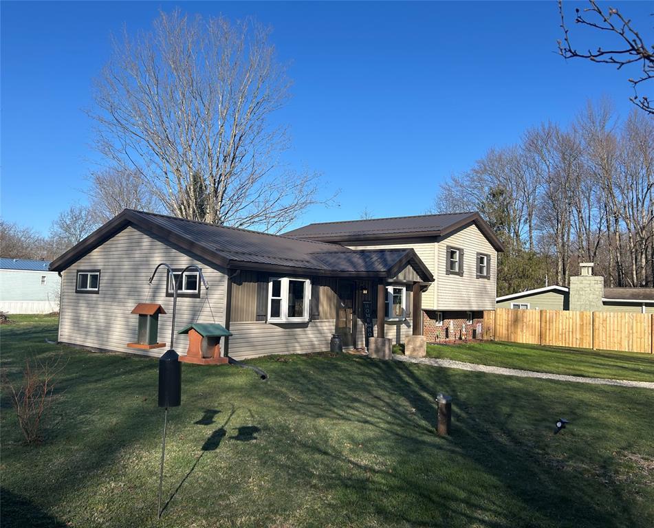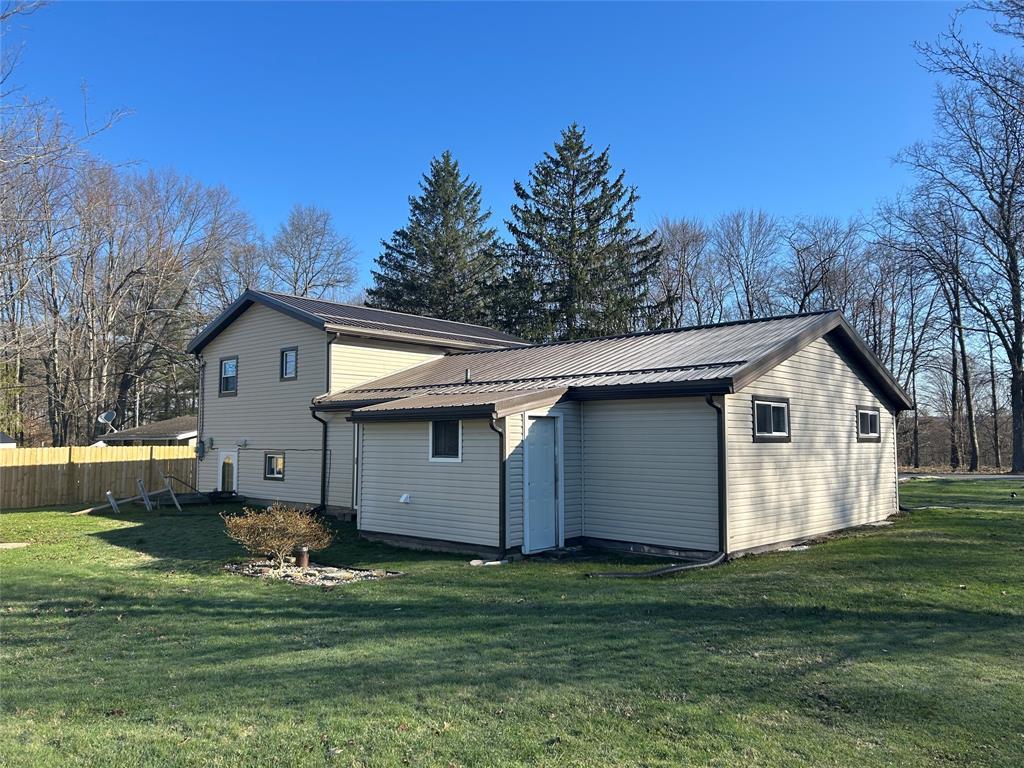 4-bedroom home with 1.5 bathrooms across from Pymatuning state park. Open kitchen/dining/living room area. Dining room has a pantry & sliding glass doors leading out the back yard. Updates include covered front entrance; new windows and metal roof about 2 years ago; siding & gutters; pellet stove (stays w/ house); hot water tank; 2 sheds (one new & added metal roof to older shed). Additional 480 sq ft of space in the lower level that could be finished. Lower level has door to the backyard. Blackberry & blueberry bushes on the property. Slight view of Pymatuning Lake.