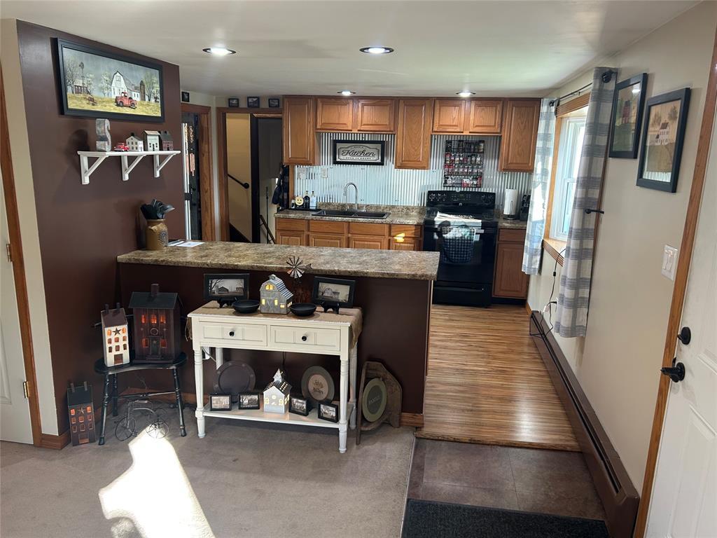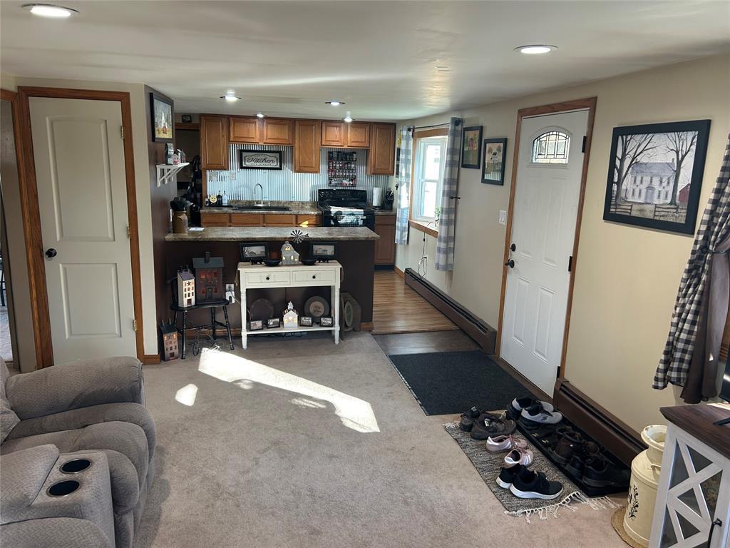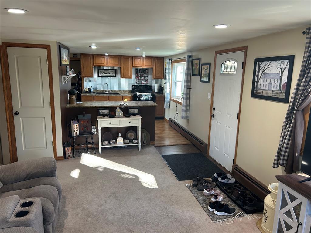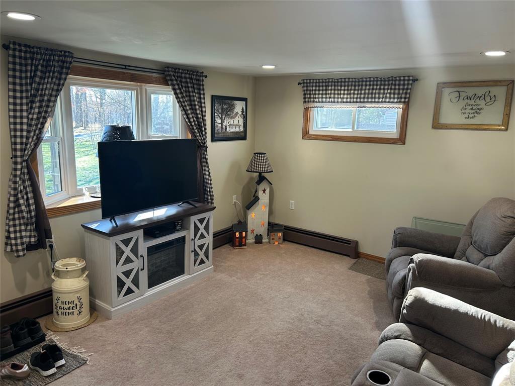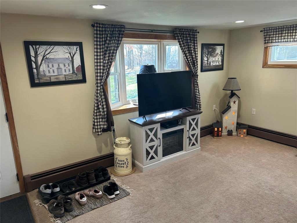 4-bedroom home with 1.5 bathrooms across from Pymatuning state park. Open kitchen/dining/living room area. Dining room has a pantry & sliding glass doors leading out the back yard. Updates include covered front entrance; new windows and metal roof about 2 years ago; siding & gutters; pellet stove (stays w/ house); hot water tank; 2 sheds (one new & added metal roof to older shed). Additional 480 sq ft of space in the lower level that could be finished. Lower level has door to the backyard. Blackberry & blueberry bushes on the property. Slight view of Pymatuning Lake.