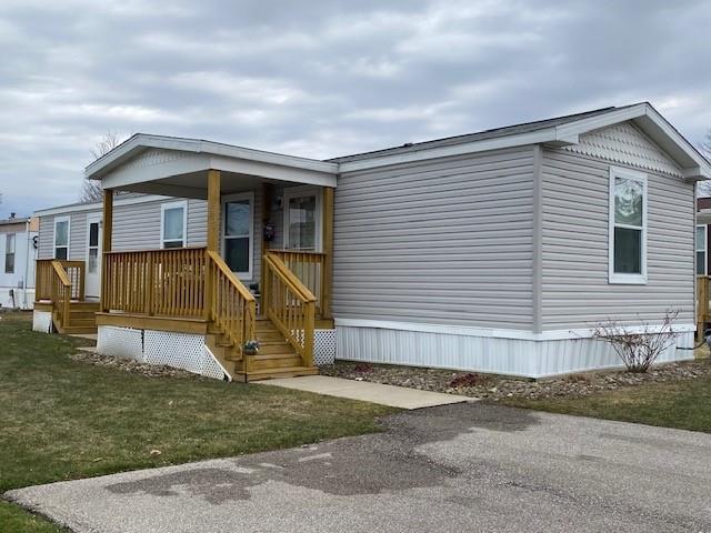 Fantastic opportunity to move right into this turnkey one owner home in Millcreek's desirable Green Meadows Park selling fully furnished! This tastefully decorated 2020 Commodore 16'x56' home boasts a comfortable floor plan with an open kitchen and living area. Primary bedroom features a full ensuite bath and two-door large closet. 2nd full bath offers "easy step in" shower. Two decks, storage shed and private driveway. Enjoy the park's clubhouse year-round (recently renovated!) and pool with convenient access to public transportation. This is NOT a 55 year and older community. $417 HOA covers lot rent, garbage and sewer.