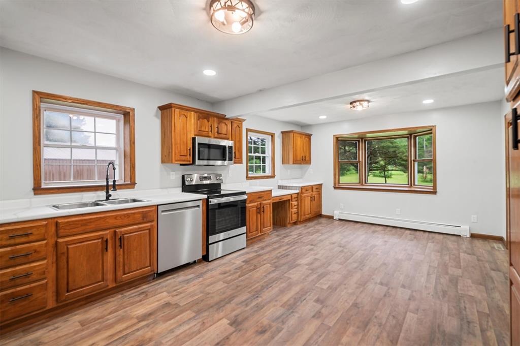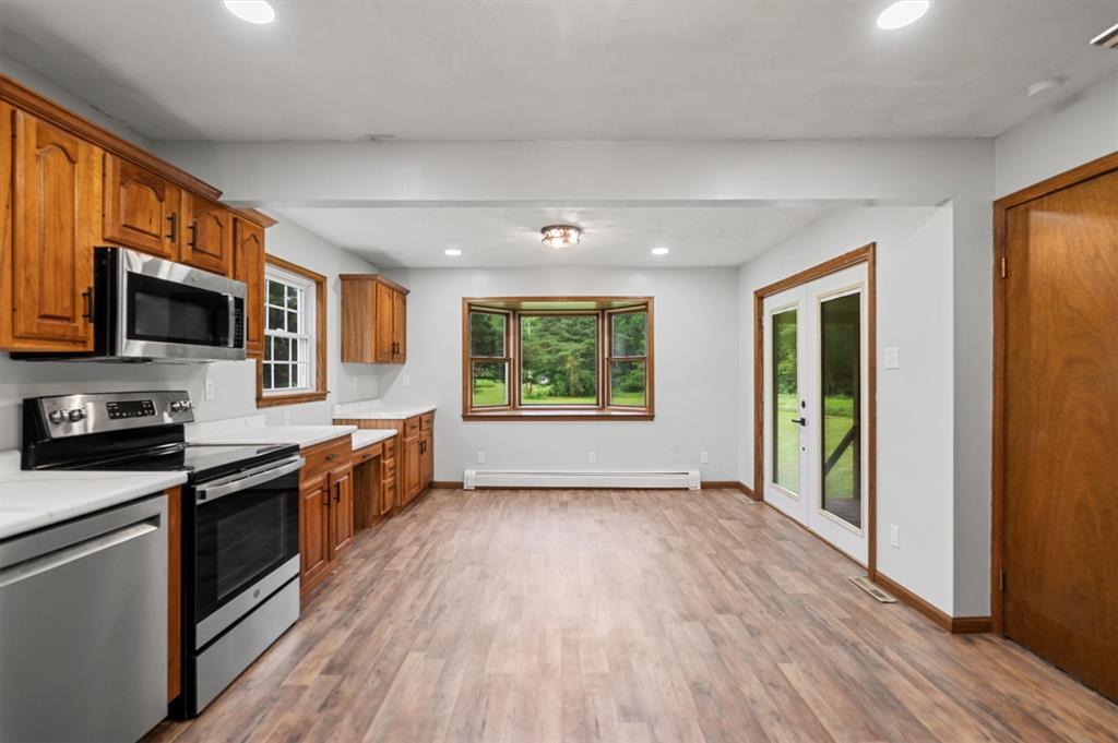 This beautifully remodeled ranch home offers the perfect blend of comfort and modern updates on a spacious 2.1-acre lot. Featuring 2 large bedrooms, including a primary suite with a walkout to the covered back porch, and a versatile bonus room ideal for an office, complete with its own half bath. Enjoy the bright, open living room with an abundance of new windows that fill the space with natural light. The large eat-in kitchen also opens to the covered porch—perfect for relaxing or entertaining while overlooking the serene backyard. A full basement provides ample space for a home gym or extra storage. Additional highlights include a newly repaired roof, central air for year-round comfort, and a spacious attached 2-car garage. This home combines peaceful country living with thoughtful updates for today’s lifestyle.