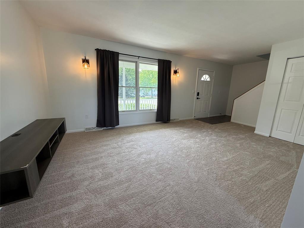Welcome Home! A charming move In ready home offering over 1,600 sq ft of freshly updated living space. Step inside to find a bright and clean interior, featuring fresh paint throughout and brand-new carpeting that adds warmth and comfort to every room. The spacious layout includes a welcoming covered porch, perfect for morning coffee and relaxing evenings. Out back, enjoy the beautiful deck ideal for entertaining or simply soaking in the views... on clear days you can catch a glimpse of the lake. Also included is a full basement with laundry area, offering ample storage & potential for additional living space.