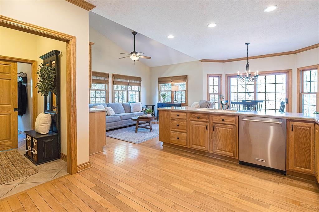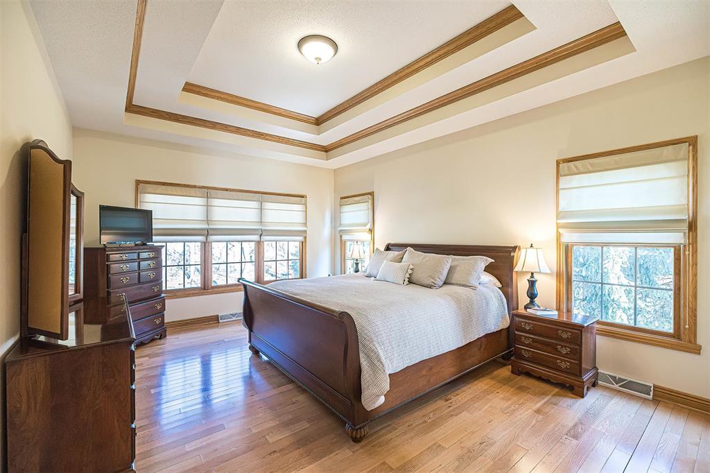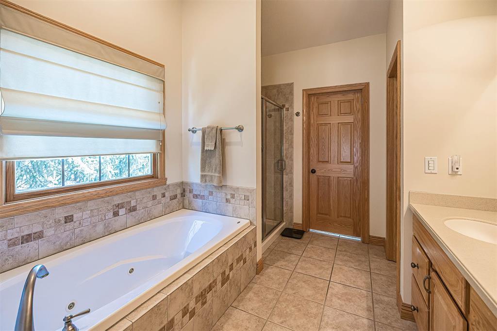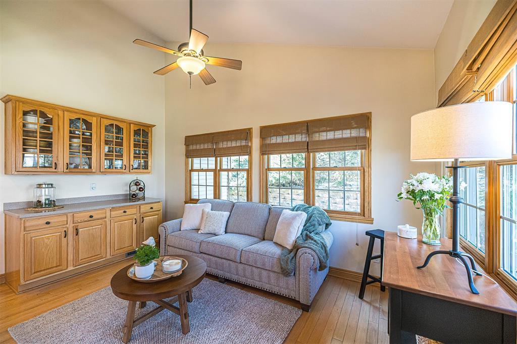 Immaculately maintained custom home backing up to the 7th fairway in Whispering Woods. The interior of this home features hardwood floors, two story living room with wood burning fireplace, huge first floor master suite with walk-in closet, custom kitchen, first floor laundry and mud rooms. The upper level has two large bedrooms with an office connected to unfinished bonus space that would make an amazing fourth bedroom. The unfinished lower level includes a 13-block basement with a walk-out and window which could become incredible living space. The exterior includes an oversized garage with plenty of room for two large SUV’s and more, a two-tier stamped concrete patio, and a landscaped lot with a path leading directly to the golf course. All this is located on one of the best lots in Whispering Woods, convenient to everything including Asbury Elementary and Walnut Creek Middle School.