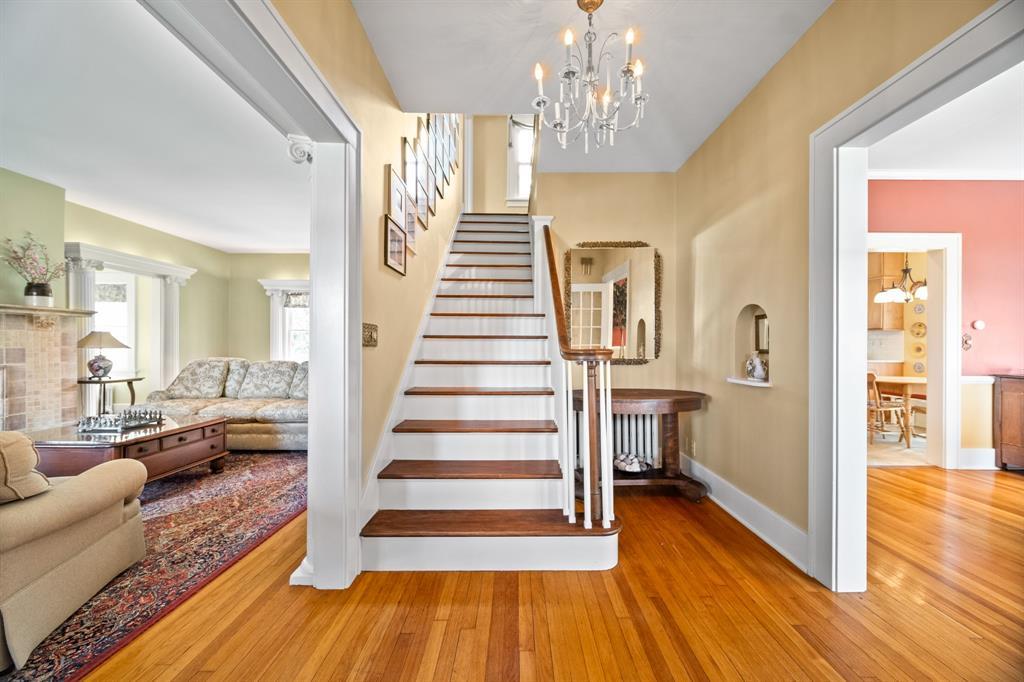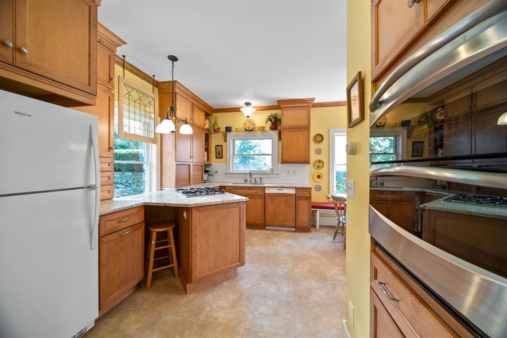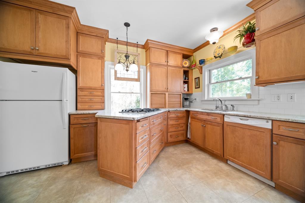 This Glenwood gem radiates warmth, style, and timeless charm. Flooded with natural light, this beautifully maintained home features high ceilings, hardwood floors, and stunning original details. The living room boasts ornate columns and a two-way gas fireplace that connects to a cozy sunroom—perfect for quiet mornings or entertaining. The kitchen offers granite countertops, rich wooden cabinetry, and space to gather and cook with ease. Upstairs you’ll find four bedrooms, plus an incredible third-floor retreat with skylights—ideal for a playroom, additional bedroom, home office or living space. Enjoy a serene backyard that backs to woods and a peaceful creek. The sunroom opens to a patio above the integral two-car garage, and a second patio in the backyard provides another great outdoor space. Bonus: the basement offers flexible space currently used as a game room!