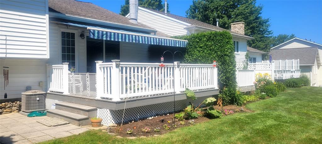 Affordable split-level condo in a private community next to Kahkwa Club. Features a remodeled kitchen with Bay Window, Granite countertops, stainless steel appliances and new stove. Vaulted living room with Cherry floors and gas fireplace. Sliding doors off living room open to a large deck & lower patio, covered by a retractable awning. Two bedrooms on upper level each with large closets and 2 full bathrooms. The remodeled basement has a family room, half bath, walk-in closet, laundry room & lighted closet under stairwell. New furnace & A/C installed in 2020. New garage door installed 09/2021 on climate controlled 2 car tandem garage. Landscaping, garbage & snowplowing included in HOA.