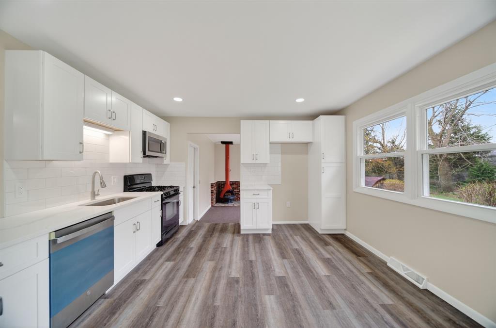 Located on a quiet cul-de-sac, this 3-bedroom, 1.5-bath ranch offers a solid layout with recent updates throughout. Luxury vinyl plank flooring runs across the home. The kitchen features white shaker cabinets and quartz countertops, opening into a spacious living room and a separate family room with a wood fireplace and sliding door to the backyard. Bathrooms have been updated with marble-look porcelain tile and new vanities. Comfortable bedrooms with good natural light. A partially finished basement adds usable space. Attached two-car garage with front and rear access, plus a large backyard and shed. Don’t miss out—schedule your showing today.
