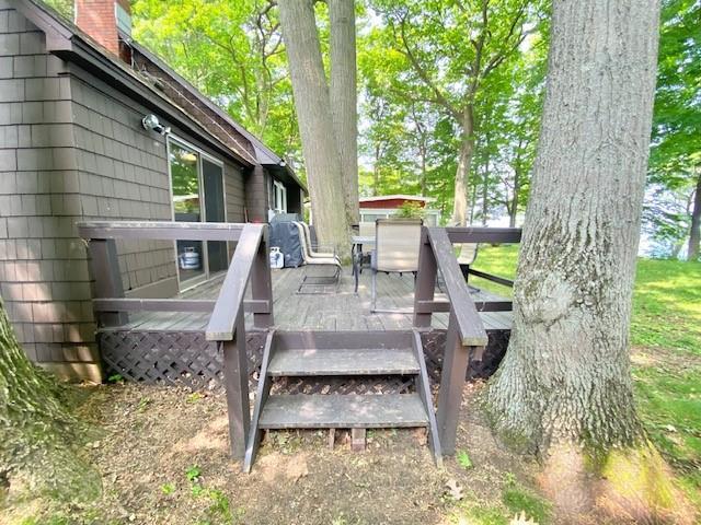 Perched majestically on a bluff overlooking the serene waters, the charming 2-bedroom log-style lake house offers a Lake Erie getaway. Nestled on a private acre, this cozy retreat blends rustic charm with modern comforts, promising an unforgettable escape. Step inside to discover a warm, inviting interior featuring beautiful granite countertops in the kitchen and the comforting glow of a wood-burning stove – perfect for chilly evenings. With a comfortable 2-bedroom layout and 1 bathroom, this home provides all you need for a relaxing stay. Many highlights: breathtaking lake views from the bluff! Imagine enjoying your morning coffee on the spacious deck, watching the sunrise paint the sky over the water, or unwinding with a glass of wine as dusk settles. This home and acreage offers privacy and tranquility, ensuring a peaceful experience. Currently operating as a beloved Airbnb, this unique property comes with some furnishings, making your arrival seamless.