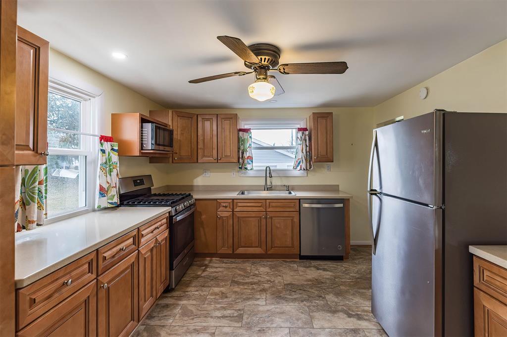Location, space, upgrades! This home has it all and will move to the top of your MUST SEE list! Features the rare 4 bedroom and 2 full bathroom combination, with 2 bedrooms and a full bath on each floor! There's plenty of living and entertaining space too, including a professionally remodeled eat-in kitchen with maple cabinets and stainless appliances, a huge living room and a finished basement family/game room with a bar too! Gorgeous hardwood floors throughout a lot of the home are in excellent condition! There are many other large updates too, like almost all new windows, new furnace and more. Outside you'll find amazing garage space and a cute, manageable yard! If you're looking for a solid, move-in ready home that was well taken care of so you have peace of mind, then welcome home!