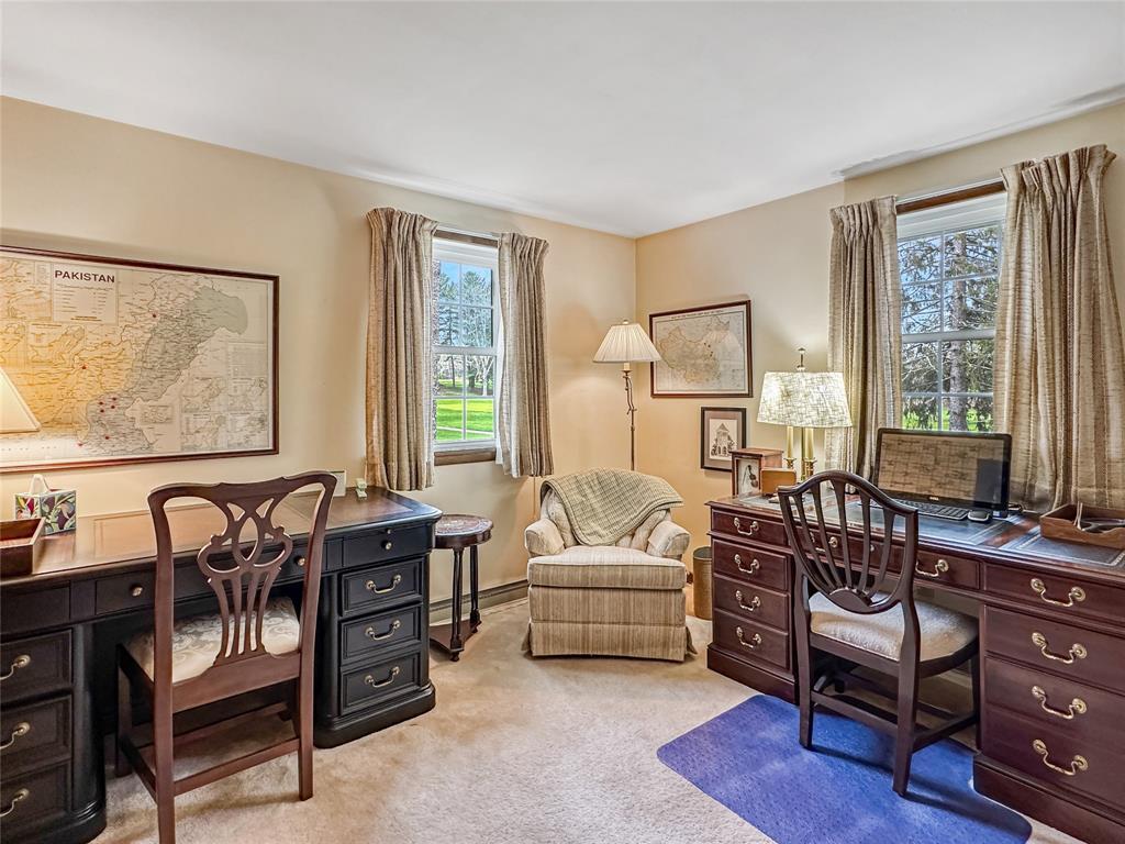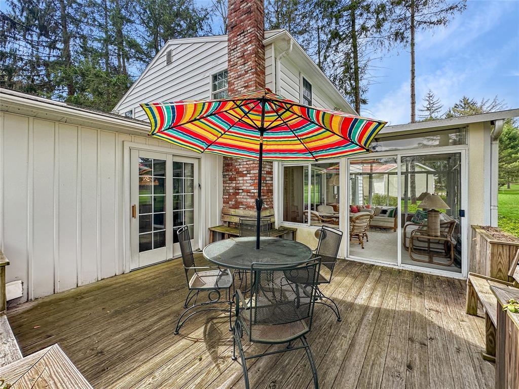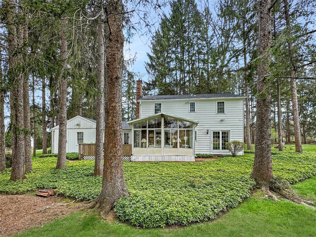 Nestled among the pines on a scenic golf course lot, this one-owner home offers 4 bedrooms & 2 1/2 baths and has been tastefully updated and well maintained over the years. Featuring newer vinyl windows, Pella sliding doors and a new roof in 2024. The spacious Living Room and Dining Room are perfect for entertaining, plus a cozy Family Room with built-in bookshelves and a gas fireplace. Eat-in Kitchen with granite countertops, double built-in wall oven, refrigerator, dishwasher and newer cooktop are all included. Gorgeous Sun Room with a cathedral ceiling and a wall of windows overlooks hole number one at Culbertson Hills Golf Course. First floor Laundry Area off the kitchen with washer and dryer included. Upstairs, you’ll find 4 bedrooms, including the primary suite with a remodeled bathroom. The two-car garage & basement provide extra storage. Conveniently located within walking distance to downtown Edinboro, the Community Pool, Penn West University, and Edinboro Lake.