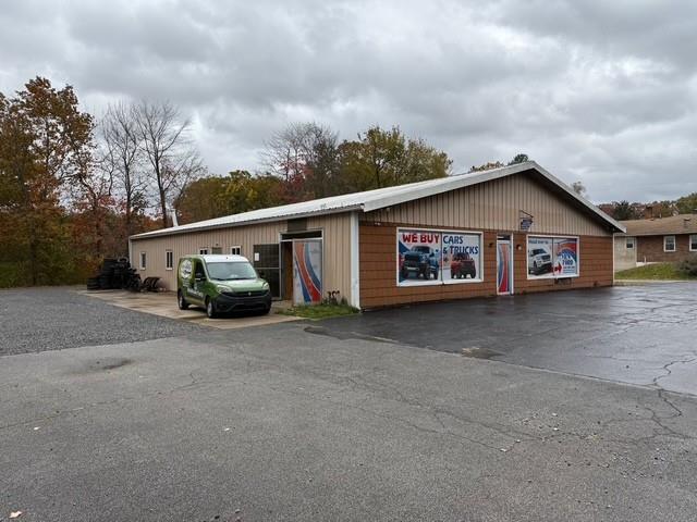 4200 sq. ft. metal building in great condition on a busy Conneaut Lake highway! Lake Area Transition offers multiple business possibilities. Large outdoor space provides ample parking. 20x60 front room; 60x50 main bay (minus restroom space). 1x12 ft overhead door; 1 10ft garage door. 2 Reznor heaters in main bay. Concrete floor.