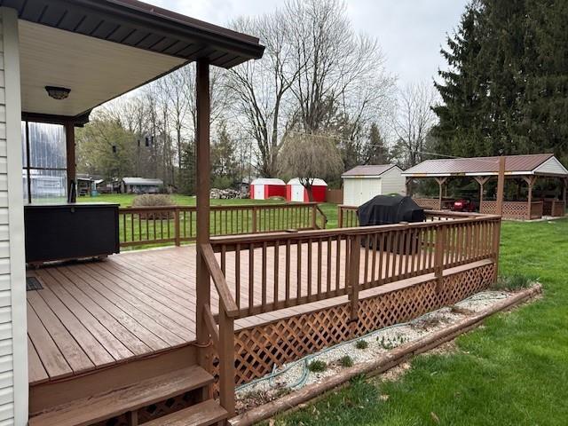 Fabulous 1 story, year round home or weekend getaway tucked away on a quiet, dead-end street. Surprising privacy on this well manicured 1 acre lot, just 3/4 mile from Pymatuning Lake! House is clean as a whistle and ready to move in. 14x22 covered picnic pavilion and 3 storage sheds. Oversized 2 car detached garage. Stone finish on lower part of exterior adds a touch of distinction. Family room has 1/2 bath, laundry closet, and the door to the giant 16x24 deck. 3 season front porch mostly windows and great views! Must visit to appreciate!