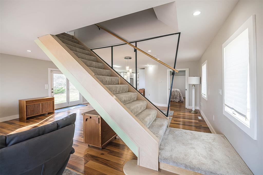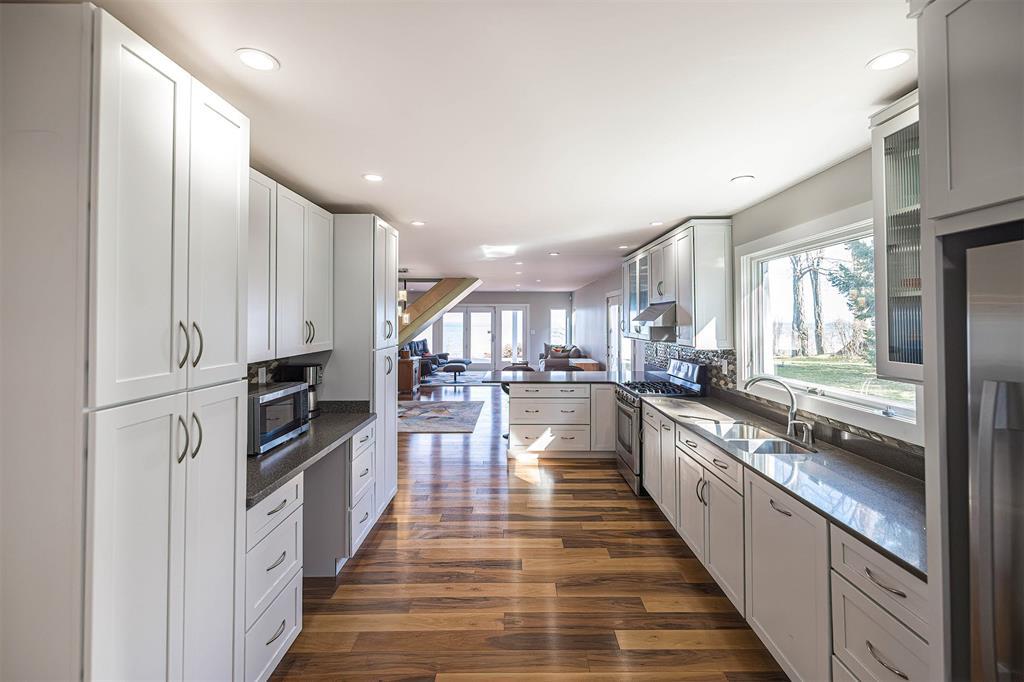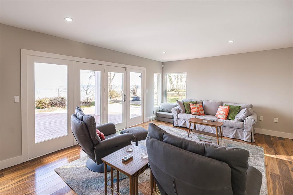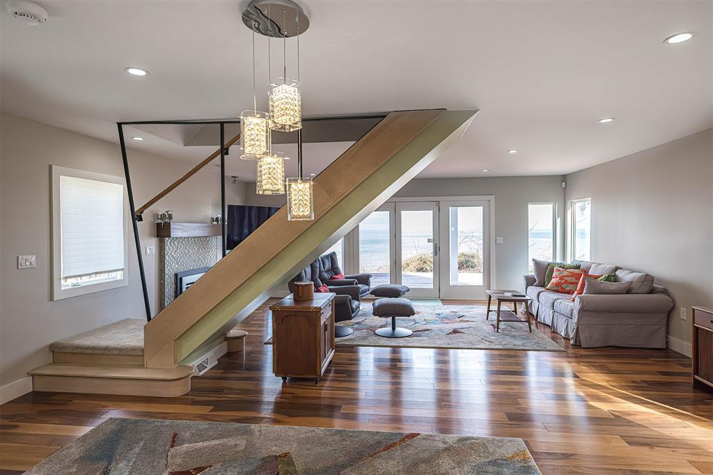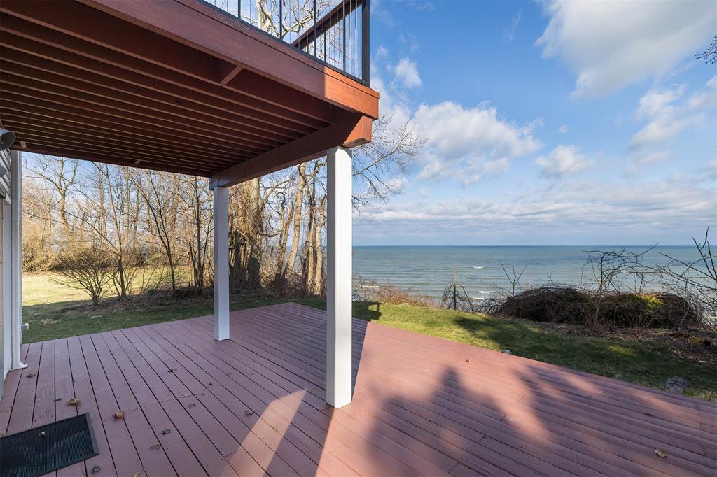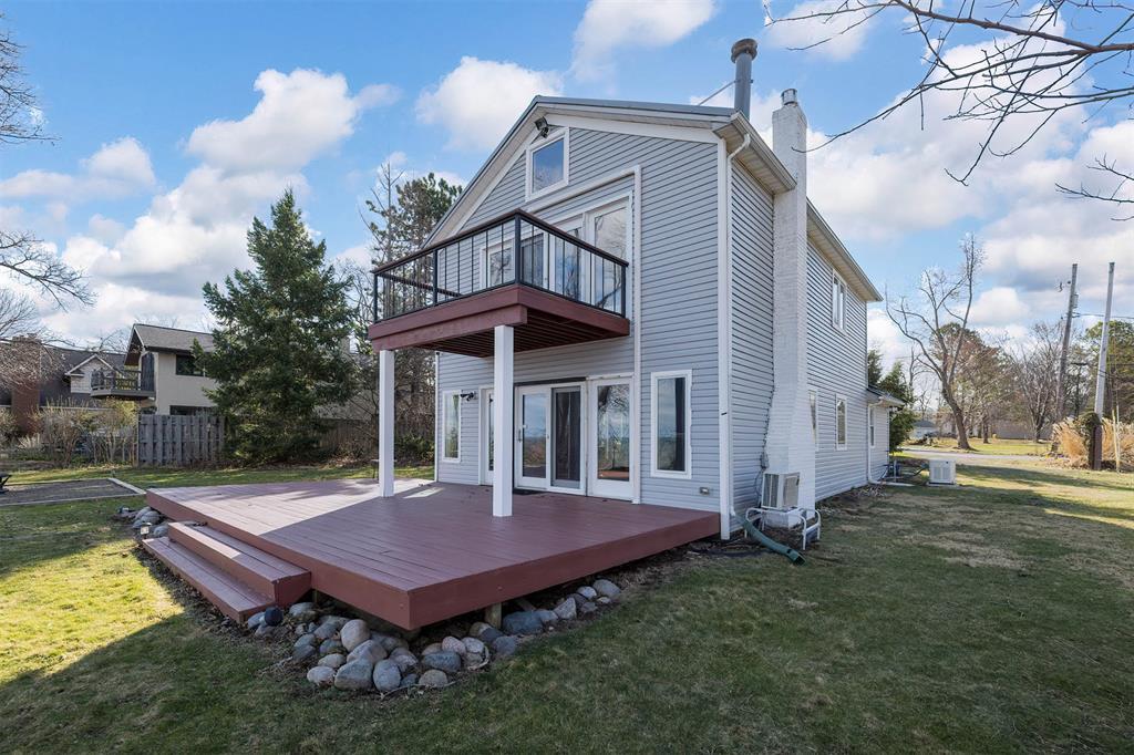 Welcome home to your private lakefront haven! Stunning and modern 2-story home sitting on a double lot offers plenty of privacy and panoramic views of Lake Erie. Designed with sleek architectural elements throughout, this contemporary home features gleaming hardwood floors and an upgraded kitchen with newer cabinets, countertops and pantry area. Open concept living and dining area with gas fireplace and direct lake views. First floor bedroom with built-in Murphy bed and laundry area. Second floor primary suite features a private balcony with prime views, wood-burning fireplace and supplemental AC/heat pump. Primary bath includes a tiled shower, soaking tub and WIC. Recent updates include: newer metal roofs, freshly painted interior, complete exterior siding replacement, updated security system and solar panel installation for incredible utility savings. Also featuring a Generac whole home generator and a detached pole barn with plenty of space to house outdoor recreation.