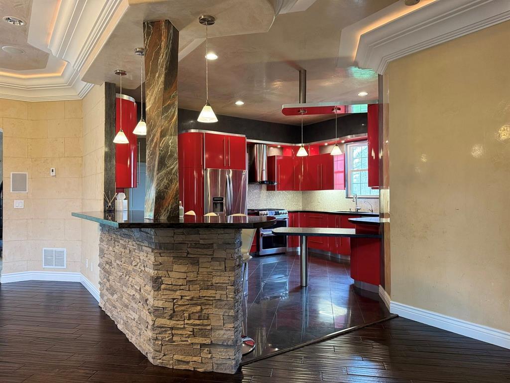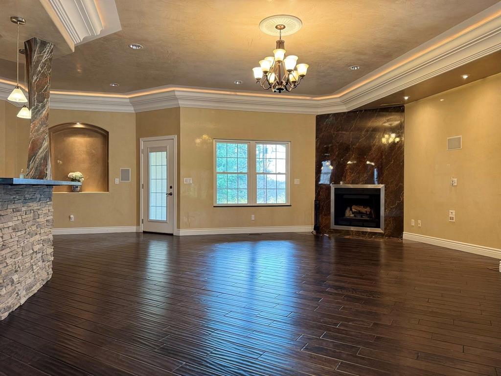 Tucked away on a quiet road, this custom-built 4 bed, 3 bath home offers over 3,500 sq ft of stylish living on 1.19 acres. Features include hardwood floors, a marble-wrapped staircase, ambient-lit crown molding, and a cozy fireplace in the main living area. The retro red kitchen has stainless appliances and custom lighting. The spacious main-floor master suite offers a jacuzzi tub and large walk-in closet, while two additional bedrooms share a Jack and Jill bath. Upstairs is a massive bonus room with a full bath and great storage. The high-ceiling basement with outdoor access is ready for your vision—ideal for a theater room, extra bedrooms, or an in-law suite. Enjoy the peaceful yard from the patio with natural gas hookups, plus an attached 2-car garage. Built in 2010, this home is full of charm and possibility!