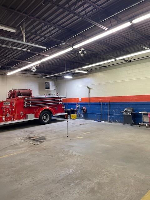 Clean 3 Bay garage in high visibility location. Reznor heater in garage. Building dimensions 56x35. Floor drains in garage.