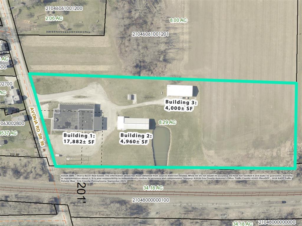 26,842±SF three building industrial facility on 8.29± acres available for sale. Located just 5 minutes (2.9 miles) from I-90 in Fairview. MAIN BLDG: 17,882±SF modern industrial facility with 2 drive-in overhead doors & 1 truck dock – built in 1961. 2,690± SF fully climate controlled office area (15%) – recently renovated with 5 private offices, conference room, 2 restrooms & break room. 15,192±SF heated warehouse area (85%) with 2 work rooms, break room, locker room & restroom. 11’ To 16’5” ceilings, 120/240/400V, 3 phase electric service, four 1-ton & one ½ ton cranes, and dry sprinkler system. BLDG 2: 4,960±SF two-bay warehouse with 3 drive-in overhead doors & 1 truck dock, 13’3”-13’6” ceilings, gas forced air heat with 2 zones and metal roof – built in 1997. BLDG 3: 4,000±SF two-bay warehouse with 3 drive-in overhead doors, 11’8” ceilings, 1 restroom & gas forced air heat in bay 1 (80% of building/3,200±SF). Floor plans available. Well & septic system. Zoned I-1 Light Industrial.