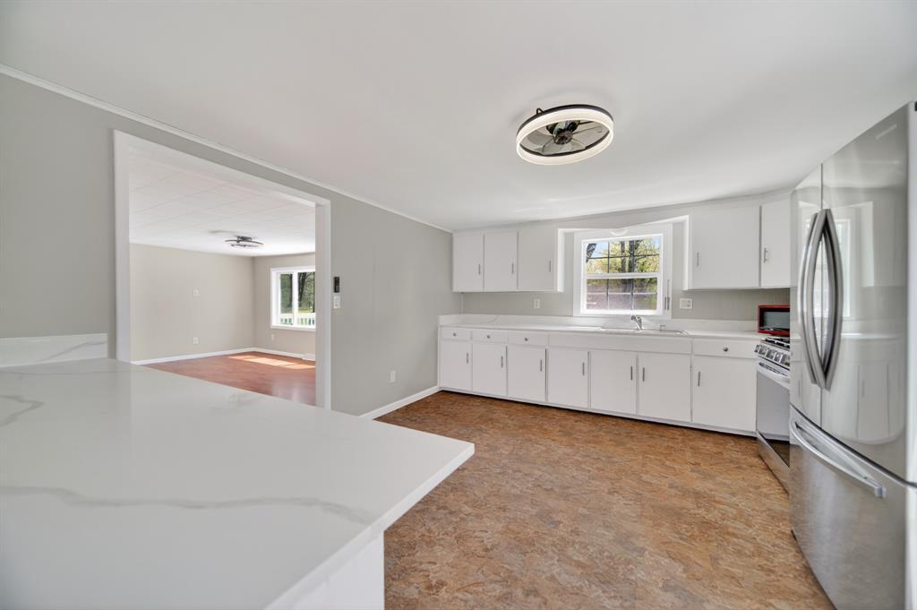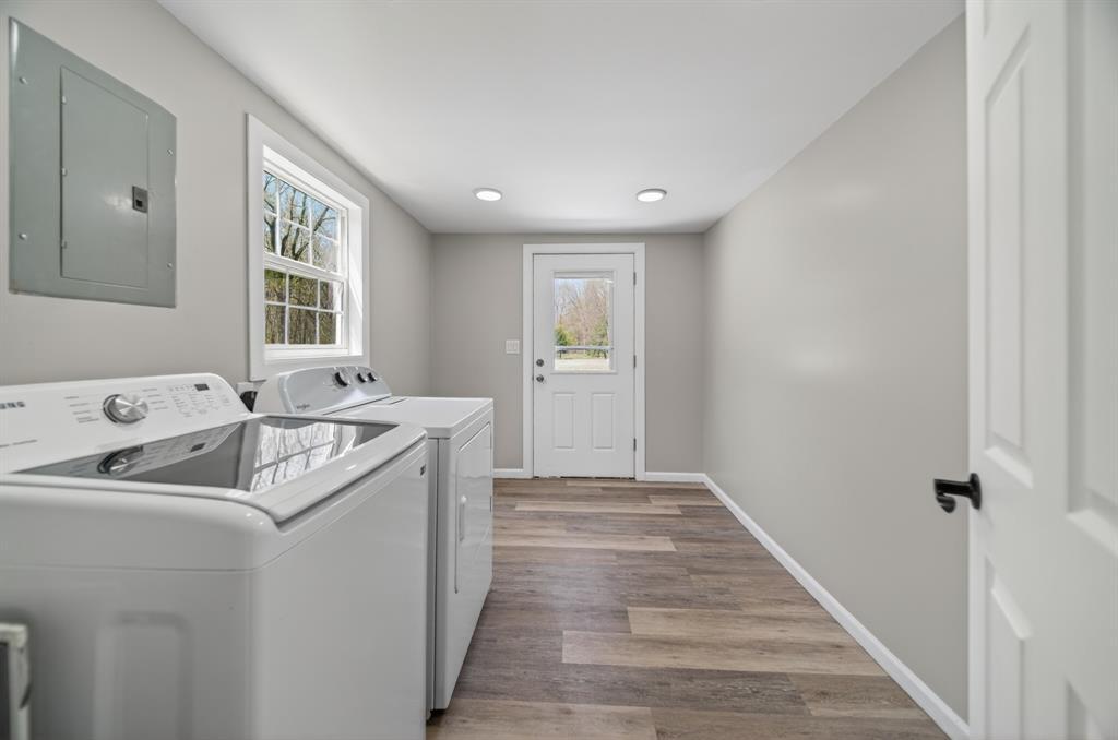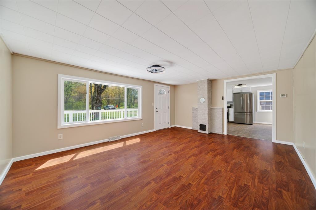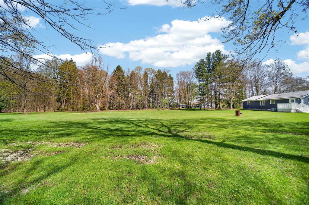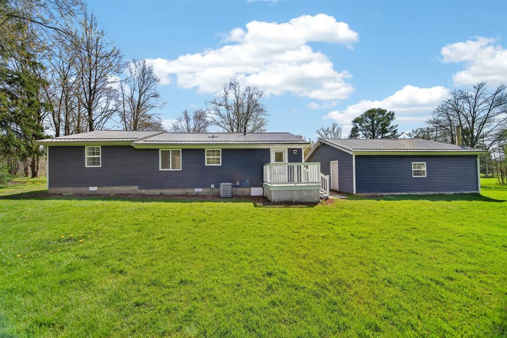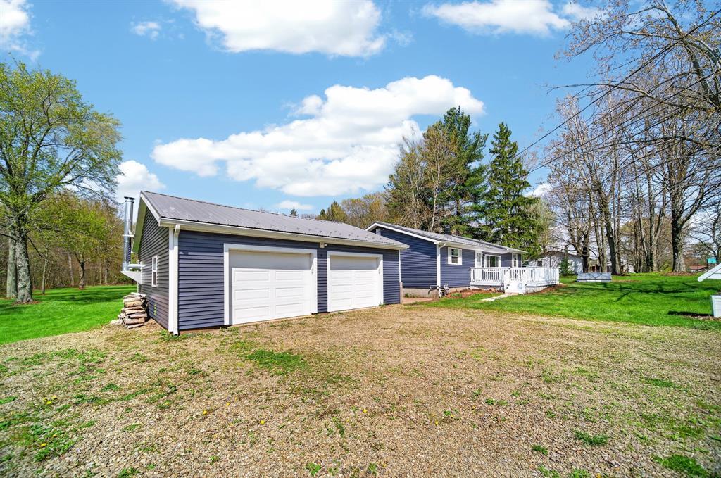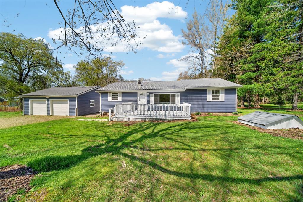Enjoy peaceful country living on 5 beautiful acres, including over 3 acres that are woods. This well-maintained, one-story home features 3 bedrooms and 2 full baths, a large mudroom with a newer washer and dryer (included), and an oversized garage with a metal roof for extra storage or workspace. The home has a brand-new metal roof on the house and newly installed central air for comfort and efficiency. Inside, you'll find an updated kitchen with added cabinets, new hardware, a quartz countertop, and fresh paint. The spacious primary bedroom includes a walk-in closet, a large bathroom with a brand-new double sink, modern fixtures, extra storage, updated lighting, and LVP flooring. A perfect blend of comfort, updates, and surroundings. Estimated: new windows and siding installed less than 6 years ago, 75% of the house plumbing redone.