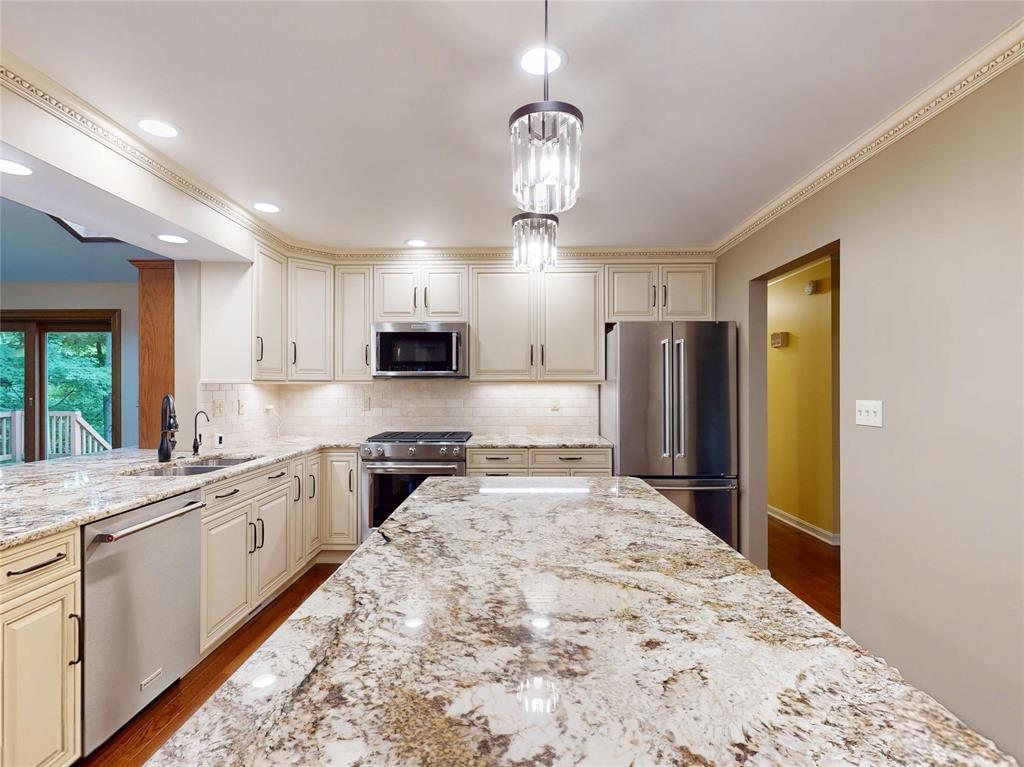 Room for all! Spacious 5 br, 3 full bath split foyer set up nicely for multi-generational living. Home sits on over 1/2 acre private, treed lot in sought after West Millcreek neighborhood. Totally remodeled kitchen in 2020 w/soft-close cabinets, granite counter tops, huge island, new lighting, hardwood floor & S.S. appliances. Dining area w/a view. Great room addition (23 x 17) is vaulted w/lots of windows & walkout to multi-tier deck. A great home for relaxing & entertaining. Primary bedroom suite also gives you a feeling of being in the woods w/views of the treed lot. (23 x 15), vaulted suite includes ceramic full bath w/jetted tub, double basins & convenient laundry. Plus a 12 x 8 walk in closet. Skylights in Great Room & Primary BR provide even more natural light. Lower level features a family room w/gas fireplace, 5th bedroom or home office, 2nd kitchen, dining area w/walkout, game room, exercise room & full bath. 29 x 26 attached garage! 1 yr home warranty.
