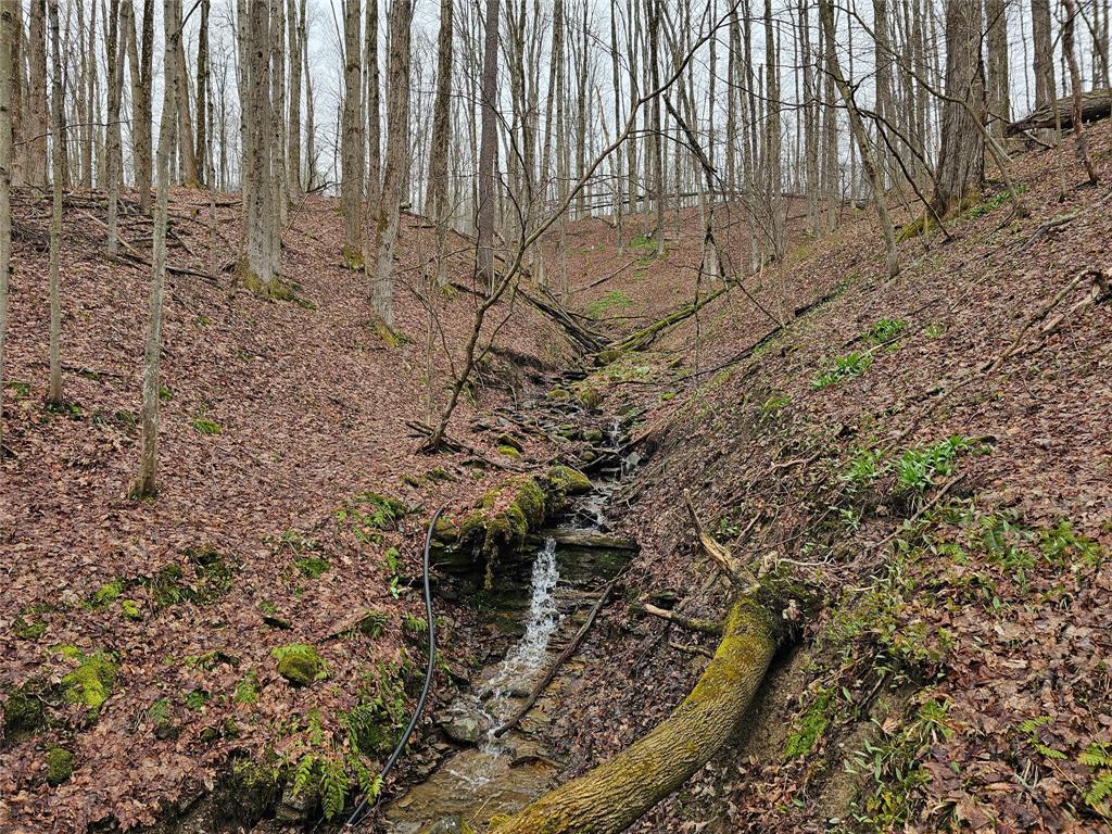 Two-acre lot on a wooded hillside with a small stream running through the center. Great opportunity for someone looking for some land to hunt on.