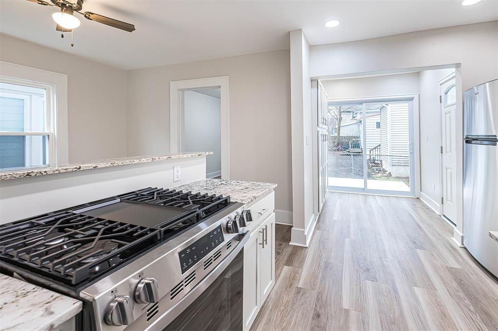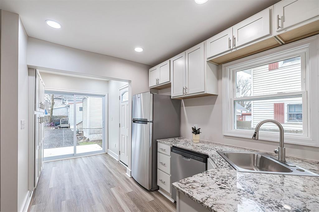 NEW, NEW, NEW! Beautifully remodeled, move-in ready home in a convenient location. This home is truly unrecognizable from the before look! The dining room and kitchen were opened up for a nice open concept look along with the back door now opening with a beautiful sliding door out to the new deck. Features new paint, flooring, carpeting, windows, fixtures, bathroom, kitchen with new appliances, along with a newer furnace (2023). The captive fifth bedroom is versatile — perfect for an office or an impressive walk-in closet.