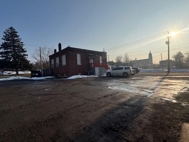 This versatile commercial property features two bathrooms—one on each floor—and is equipped with both heating and air conditioning for year-round comfort. Ample parking available in the large on-site lot. Ideal for a variety of professional uses.